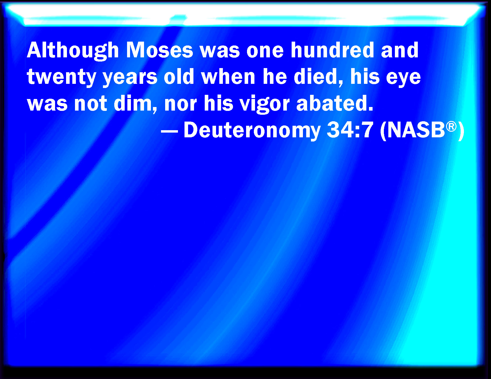 Deuteronomy 34:7 And Moses was an hundred and twenty years old when he died: his eye was not dim, nor his natural force abated.