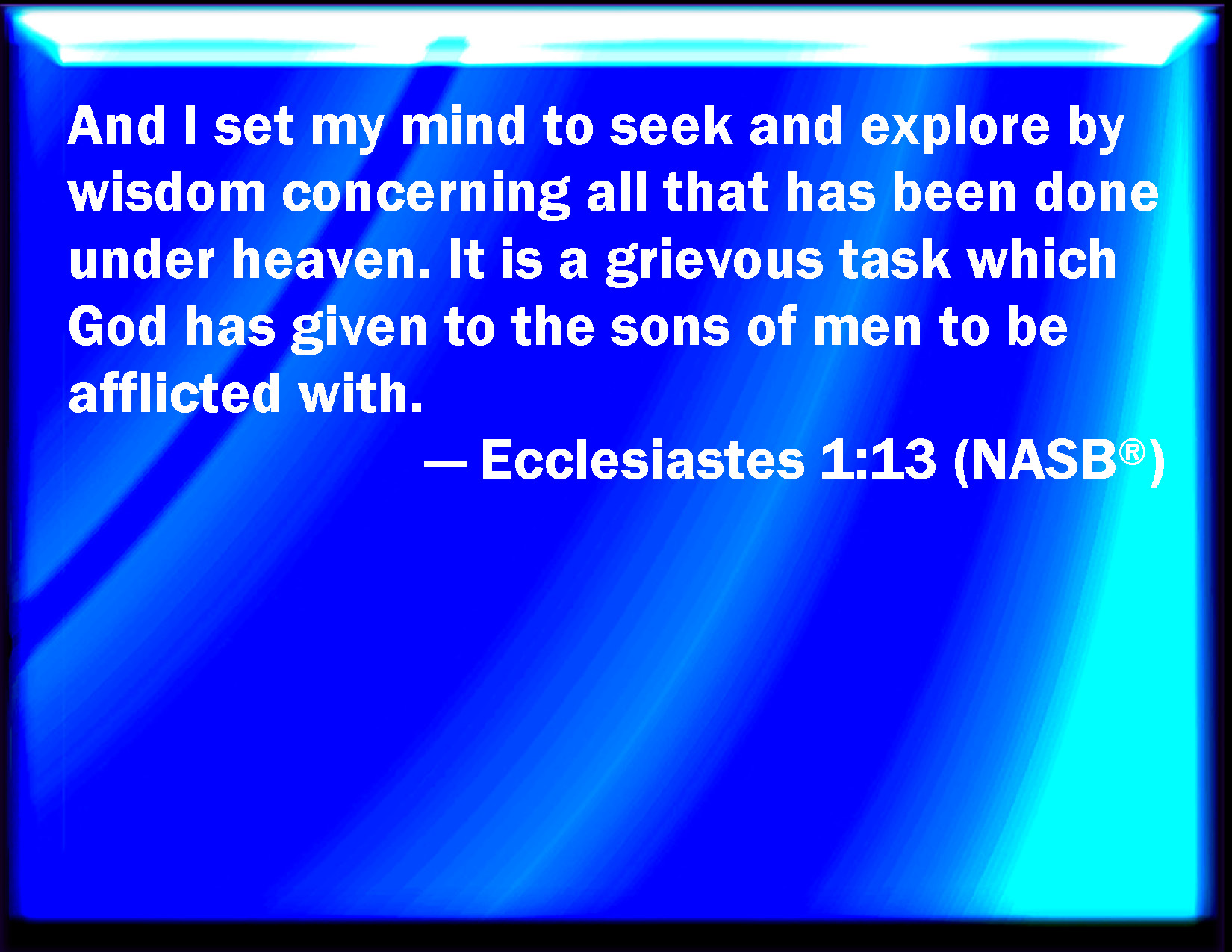 Ecclesiastes 1:13 And I gave my heart to seek and search out by wisdom concerning all things that are done under heaven: this sore travail has God given to the sons of man to be exercised therewith.
