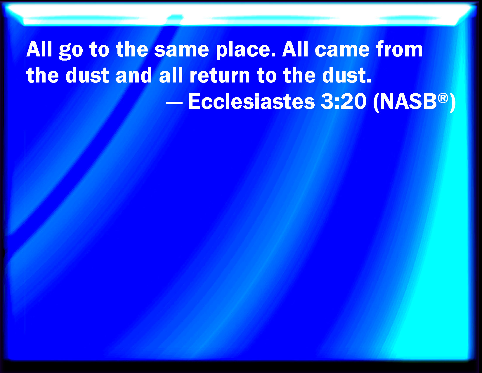 Ecclesiastes 3:20 All go to one place; all are of the dust, and all turn to dust again.