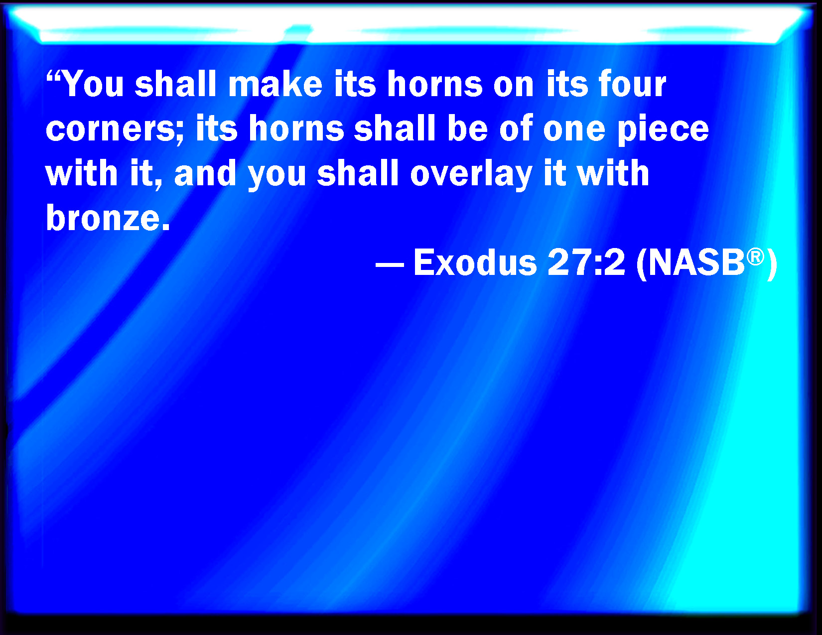 Exodus 27:2 And you shall make the horns of it on the four corners thereof: his horns shall be of the same: and you shall overlay it with brass.