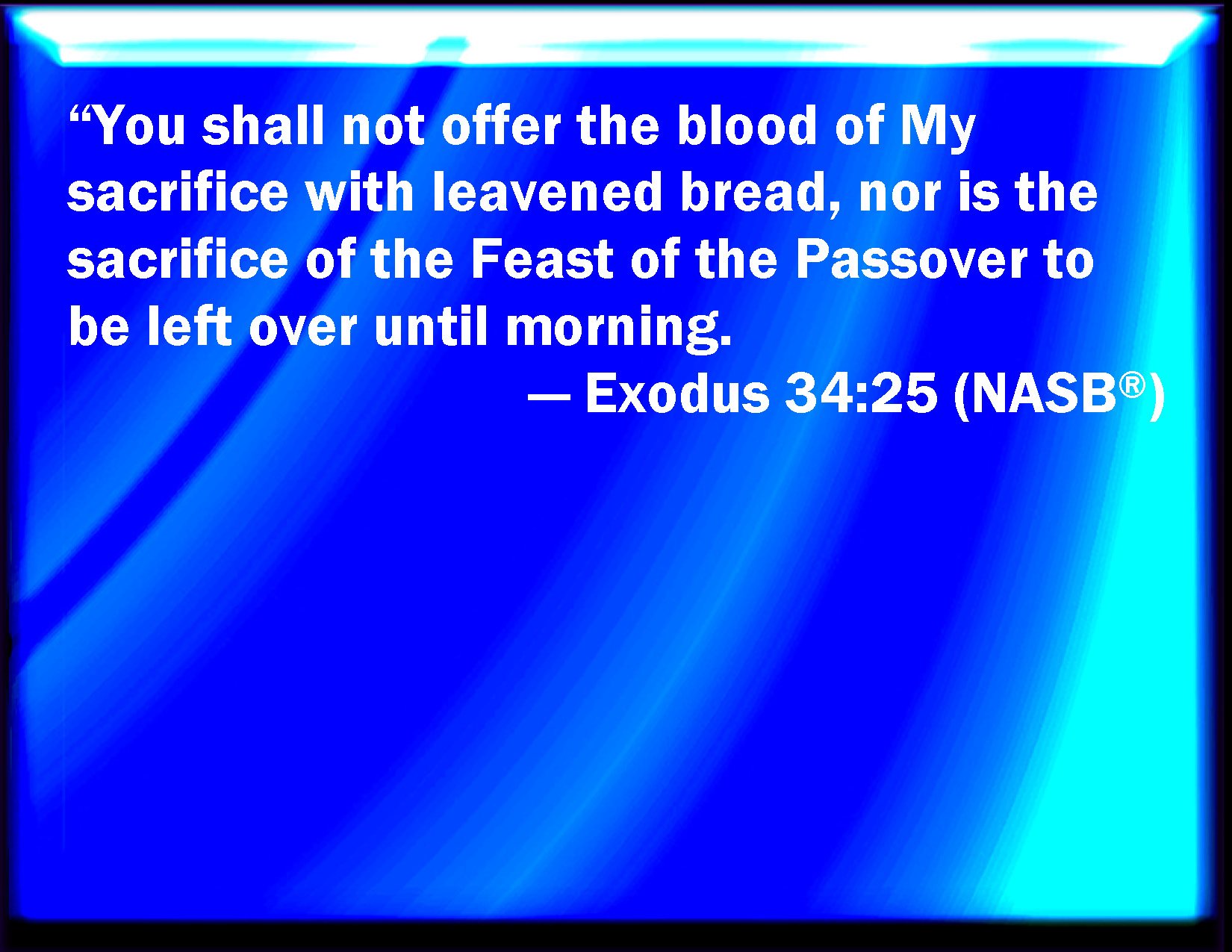 WEB:  "You shall not offer the blood of my sacrifice with leavened bread; neither shall the sacrifice of the feast of the Passover be left to the morning.