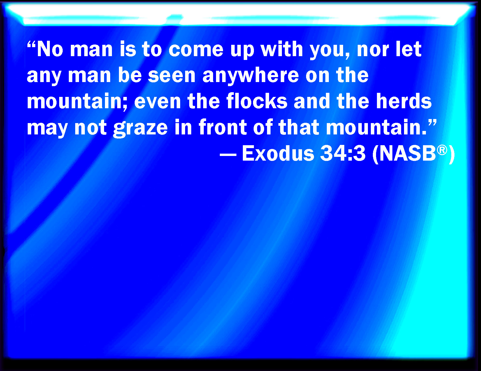 Exodus 34:3 And no man shall come up with you, neither let any man be seen throughout all the mount; neither let the flocks nor herds feed before that mount.