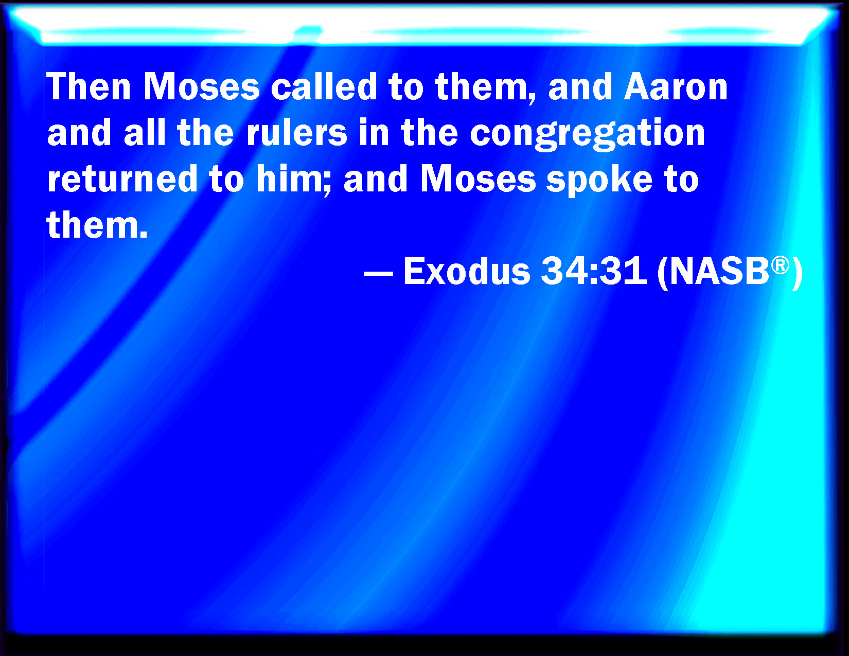 Exodus 34:31 And Moses called to them; and Aaron and all the rulers of the congregation returned to him: and Moses talked with them.