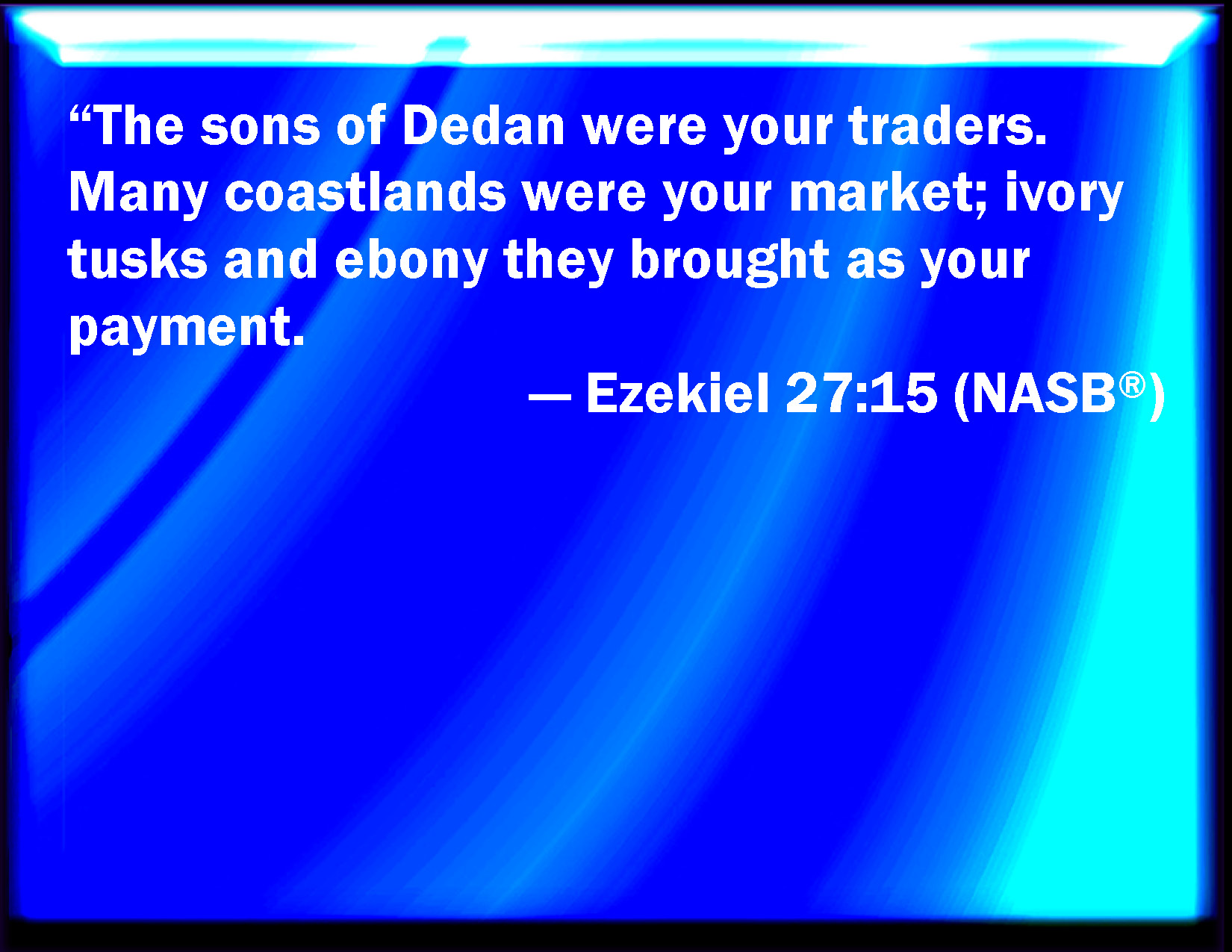 The men of Dedan were thy merchants: many islands were the traffic of thy hand, they exchanged for thy price teeth of ivory and ebony.