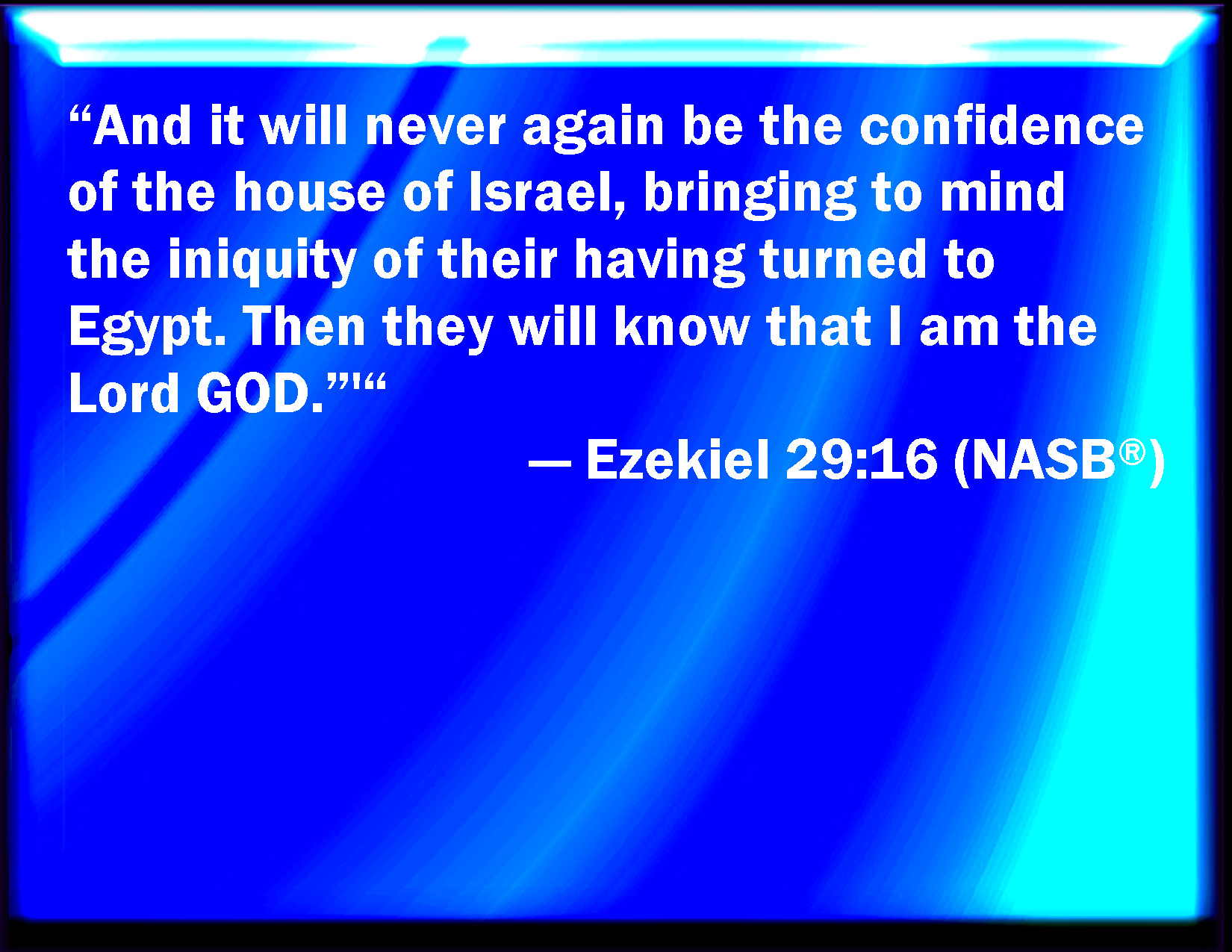 Bible Verse Slide Ezekiel 29:16 And it shall be no more the confidence of the house of Israel, which brings their iniquity to remembrance, when they shall look after them: but they shall know that I am the Lord GOD. KJV: And it shall be no more the confidence of the house of Israel, which bringeth their iniquity to remembrance, when they shall look after them: but they shall know that I am the Lord GOD. DRB: And they shall be no more a confidence to the house of Israel, teaching iniquity, that they may flee, and follow them: and they shall know that I am the Lord God. DBT: And it shall be no more the confidence of the house of Israel, bringing iniquity to remembrance, when they turn after them: and they shall know that I am the Lord Jehovah. ERV: And it shall be no more the confidence of the house of Israel, bringing iniquity to remembrance, when they turn to look after them: and they shall know that I am the Lord GOD. WBT: And it shall be no more the confidence of the house of Israel, which bringeth their iniquity to remembrance, when they shall look after them: but they shall know that I am the Lord GOD. WEB: It shall be no more the confidence of the house of Israel, bringing iniquity to memory, when they turn to look after them: and they shall know that I am the Lord Yahweh."'" YLT: And it is no more to the house of Israel for a confidence, Bringing iniquity to remembrance, By their turning after them, And they have known that I am the Lord Jehovah.'Links Ezekiel 29:16 NIV • Ezekiel 29:16 NLT • Ezekiel 29:16 ESV • Ezekiel 29:16 NASB • Ezekiel 29:16 KJV • Ezekiel 29:16 Interlinear • Ezekiel 29:16 Commentaries • Ezekiel 29:16 Parallel Texts • Ezekiel 29:16 Bible Apps • Ezekiel 29:16 Parallel • Bible Hub |