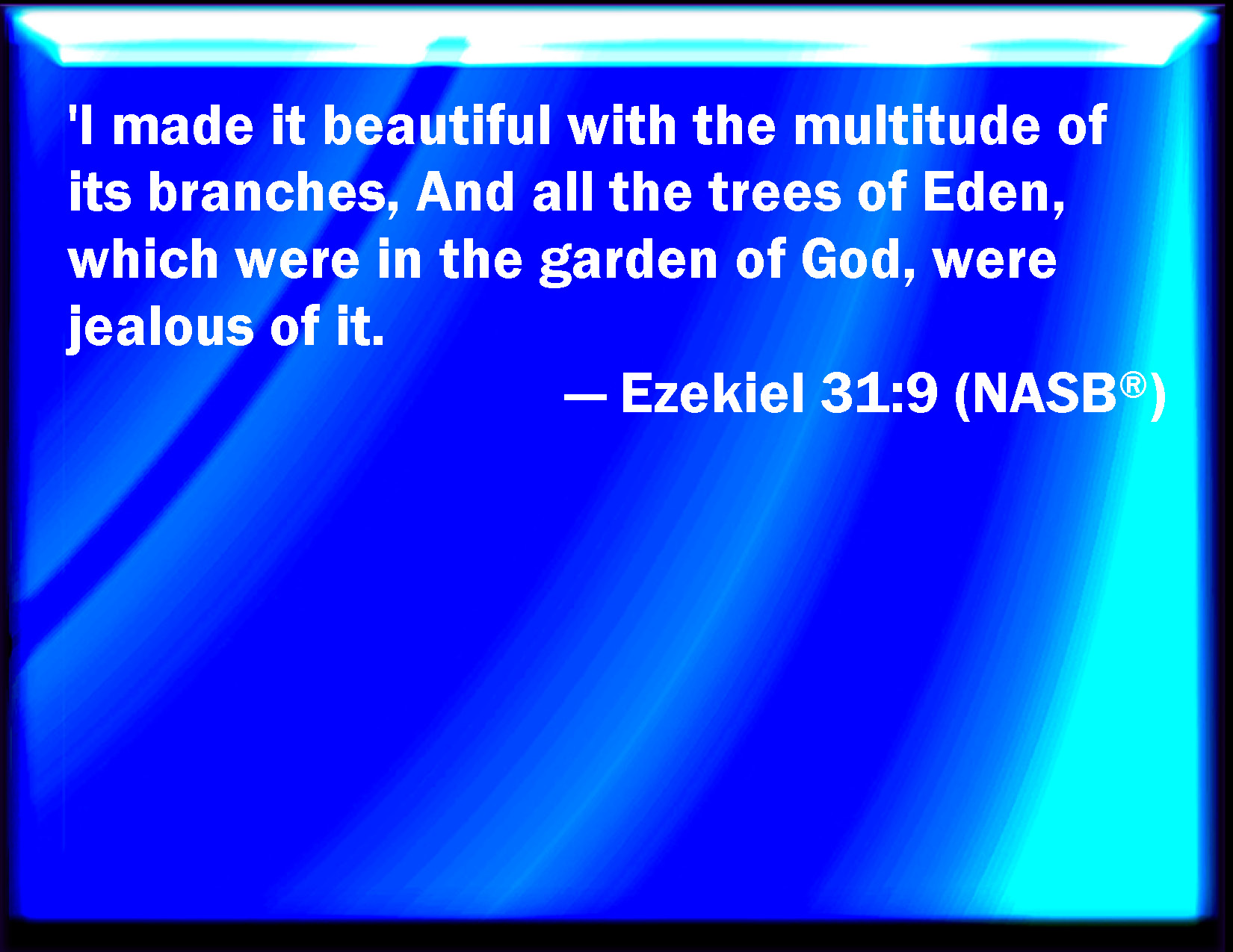 Bible Verse Slide Ezekiel 31:9 I have made him fair by the multitude of his branches: so that all the trees of Eden, that were in the garden of God, envied him. KJV: I have made him fair by the multitude of his branches: so that all the trees of Eden, that were in the garden of God, envied him. DRB: For I made him beautiful and thick set with many branches: and all the trees of pleasure, that were in the paradise of God, envied him. DBT: I had made him fair by the multitude of his branches; and all the trees of Eden, that were in the garden of God, envied him. ERV: I made him fair by the multitude of his branches: so that all the trees of Eden, that were in the garden of God, envied him. WBT: I have made him fair by the multitude of his branches: so that all the trees of Eden, that were in the garden of God, envied him. WEB: I made it beautiful by the multitude of its branches, so that all the trees of Eden, that were in the garden of God, envied it. YLT: Fair I have made him in the multitude of his thin shoots, And envy him do all trees of Eden that are in the garden of God.Links Ezekiel 31:9 NIV • Ezekiel 31:9 NLT • Ezekiel 31:9 ESV • Ezekiel 31:9 NASB • Ezekiel 31:9 KJV • Ezekiel 31:9 Interlinear • Ezekiel 31:9 Commentaries • Ezekiel 31:9 Parallel Texts • Ezekiel 31:9 Bible Apps • Ezekiel 31:9 Parallel • Bible Hub |