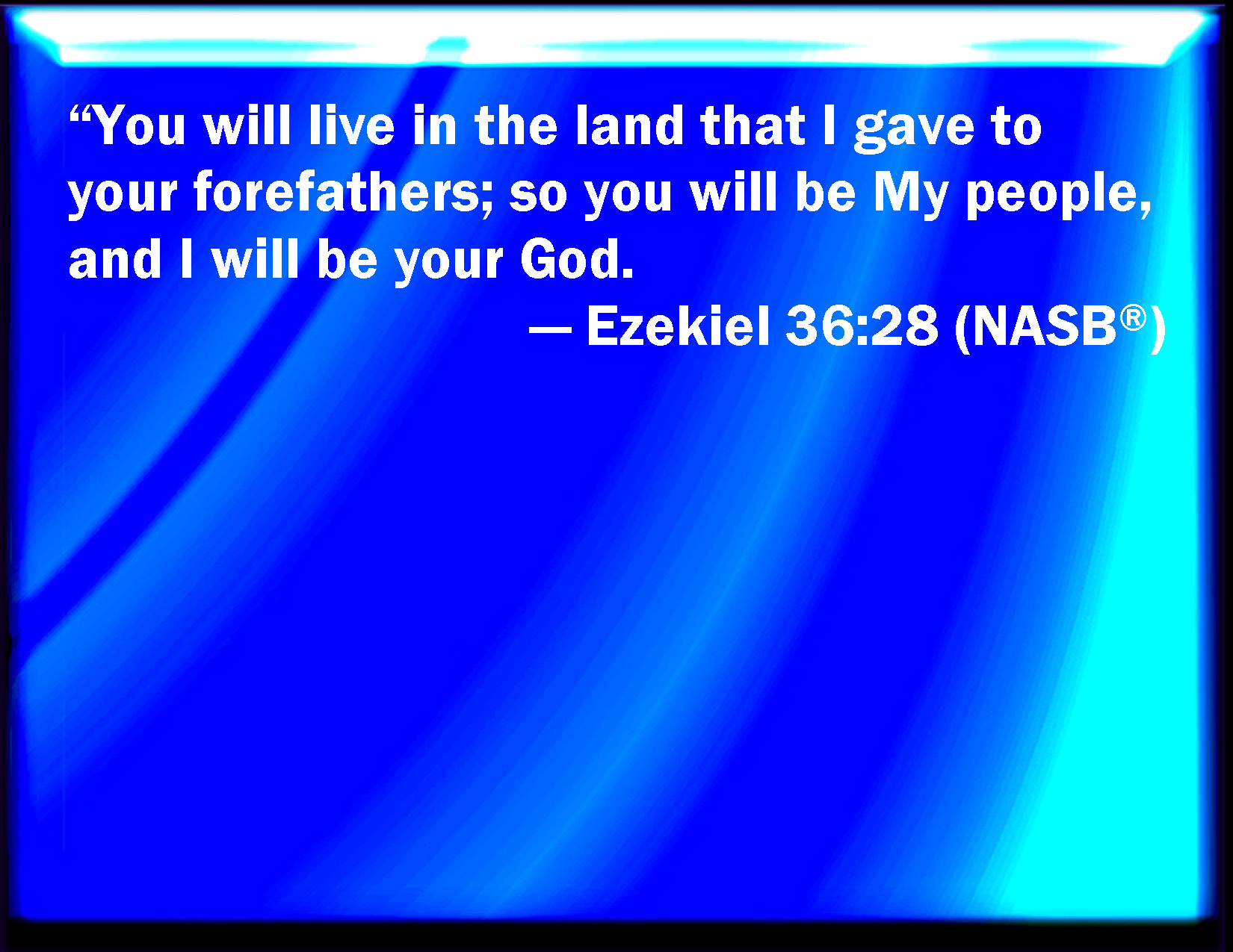 Bible Verse Slide Ezekiel 36:28 And you shall dwell in the land that I gave to your fathers; and you shall be my people, and I will be your God. KJV: And ye shall dwell in the land that I gave to your fathers; and ye shall be my people, and I will be your God. DRB: And you shall dwell in the land which I gave to your fathers, and you shall be my people, and I will be your God. DBT: And ye shall dwell in the land that I gave to your fathers, and ye shall be my people, and I will be your God. ERV: And ye shall dwell in the land that I gave to your fathers; and ye shall be my people, and I will be your God. WBT: And ye shall dwell in the land that I gave to your fathers; and ye shall be my people, and I will be your God. WEB: You shall dwell in the land that I gave to your fathers; and you shall be my people, and I will be your God. YLT: And ye have dwelt in the land that I have given to your fathers, And ye have been to Me for a people, And I — I am to you for God.Links Ezekiel 36:28 NIV • Ezekiel 36:28 NLT • Ezekiel 36:28 ESV • Ezekiel 36:28 NASB • Ezekiel 36:28 KJV • Ezekiel 36:28 Interlinear • Ezekiel 36:28 Commentaries • Ezekiel 36:28 Parallel Texts • Ezekiel 36:28 Bible Apps • Ezekiel 36:28 Parallel • Bible Hub |