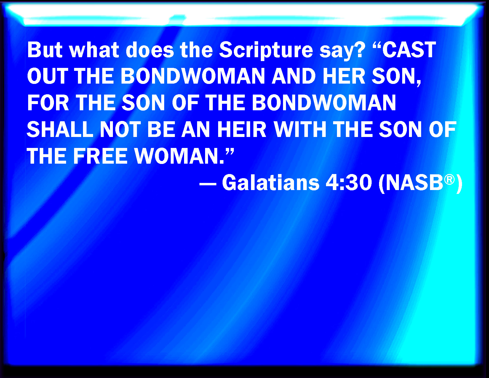 Nevertheless what saith the scripture? Cast out the bondwoman and her son: for the son of the bondwoman shall not be heir with the son of the freewoman.
