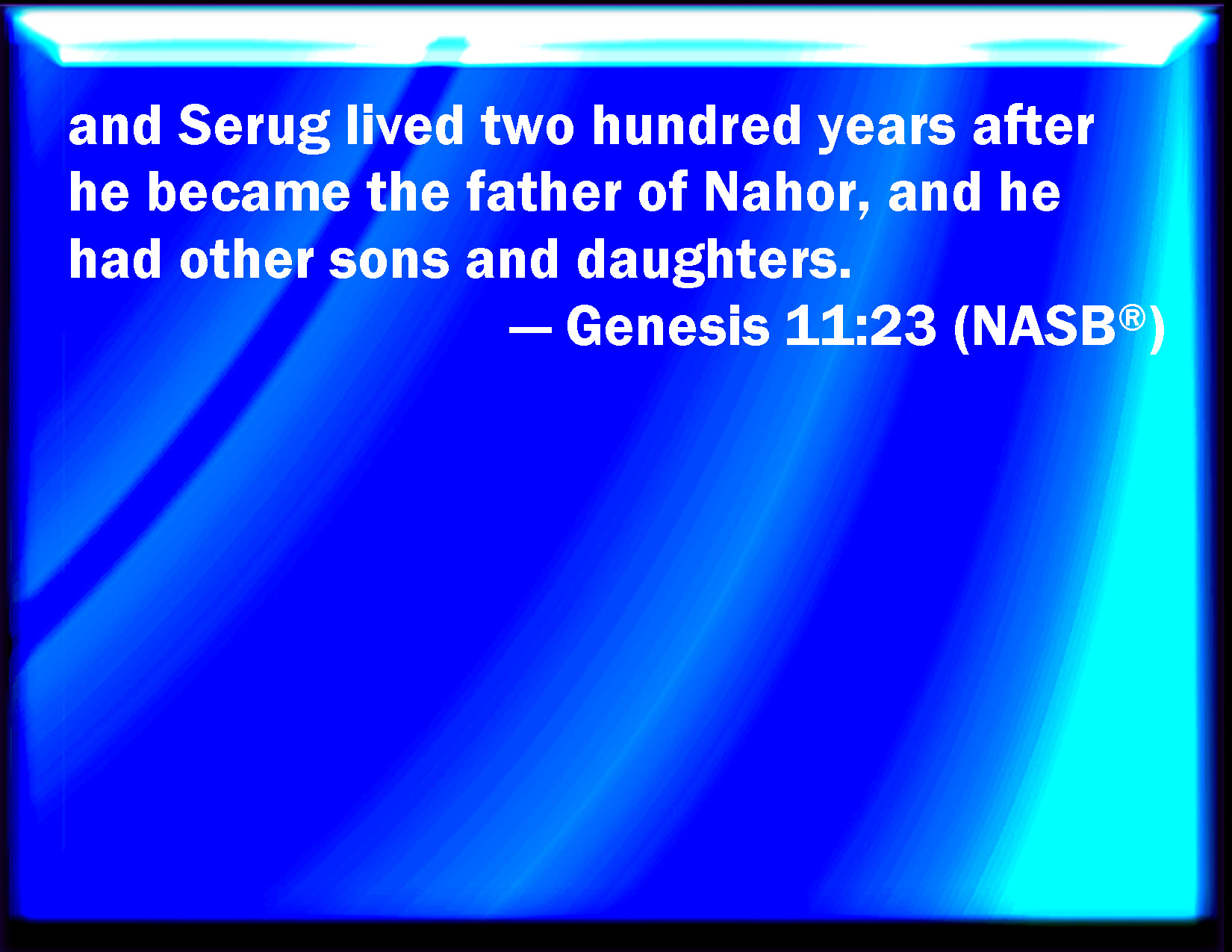 Genesis 11:23 And Serug lived after he begat Nahor two hundred years, and begat sons and daughters.