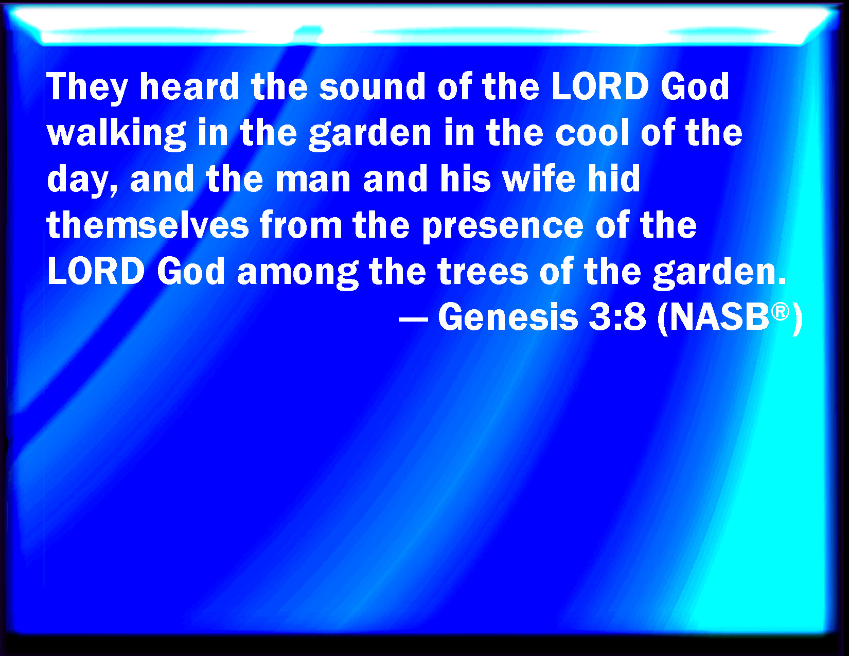 Genesis 3:8 And they heard the voice of the LORD God walking in the garden in the cool of the day: and Adam and his wife hid themselves from the presence of the LORD God among the trees of the garden.