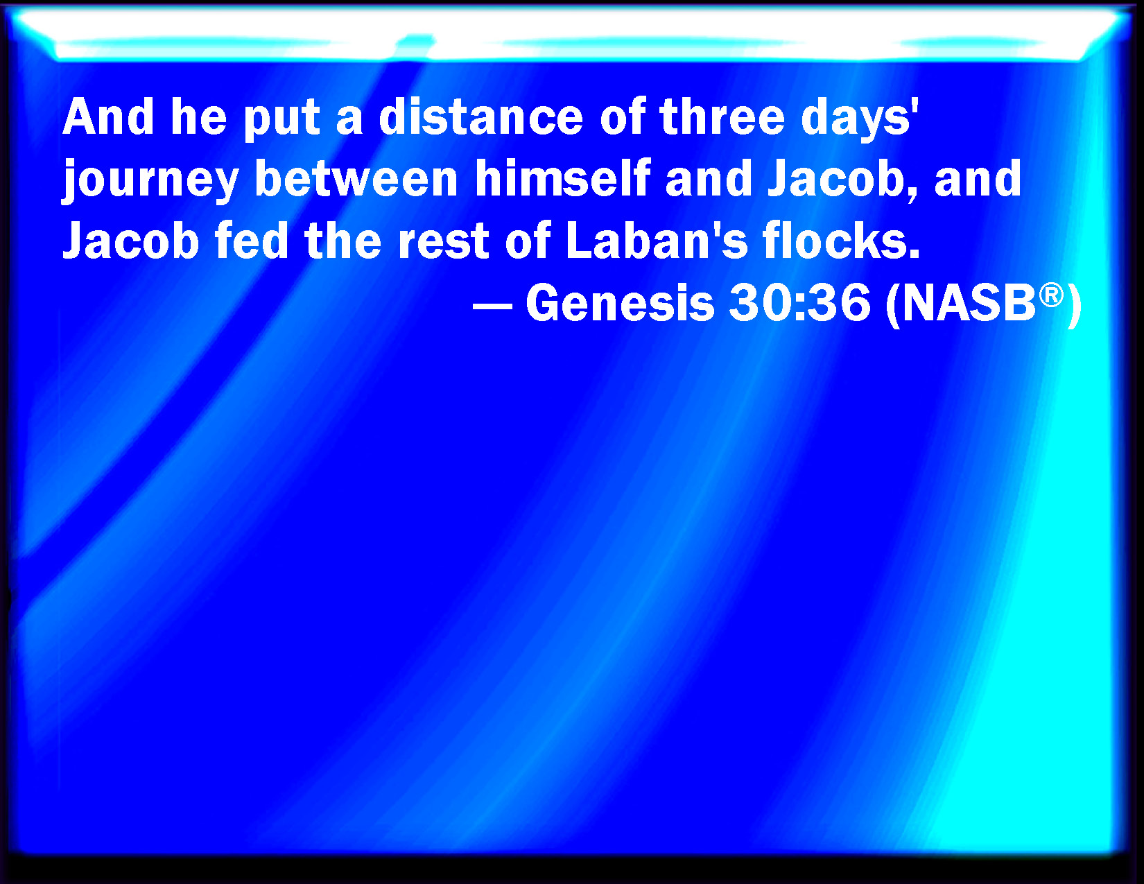 Genesis 30:36 And he set three days' journey between himself and Jacob: and Jacob fed the rest of Laban's flocks.