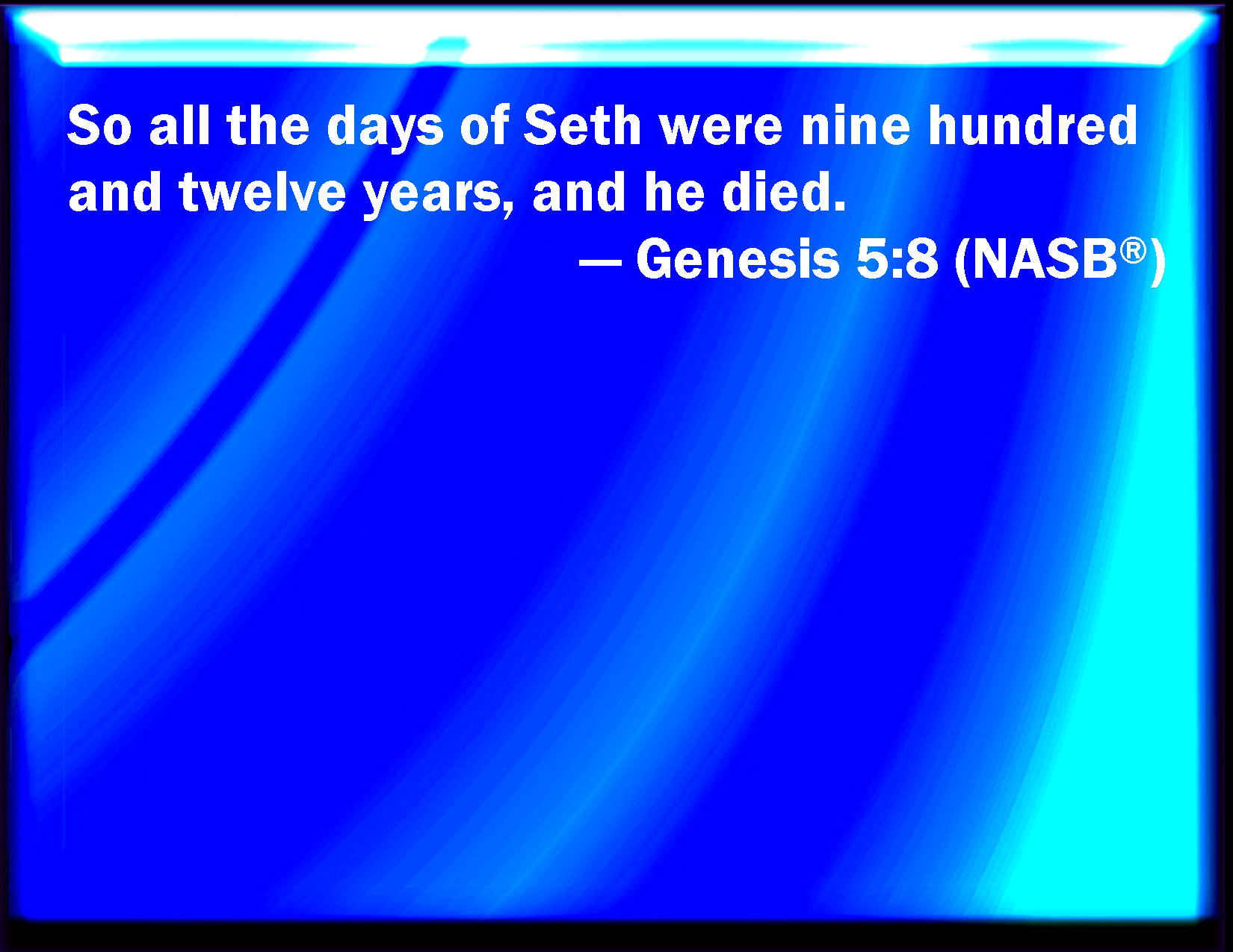 Genesis 5:8 And all the days of Seth were nine hundred and twelve years: and he died.