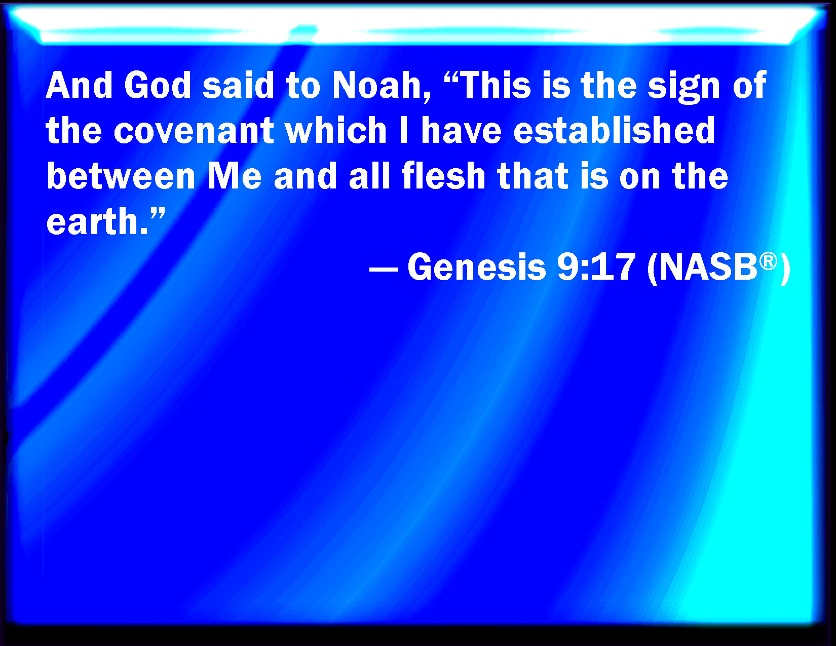 Genesis 9:17 And God said to Noah, This is the token of the covenant, which I have established between me and all flesh that is on the earth.