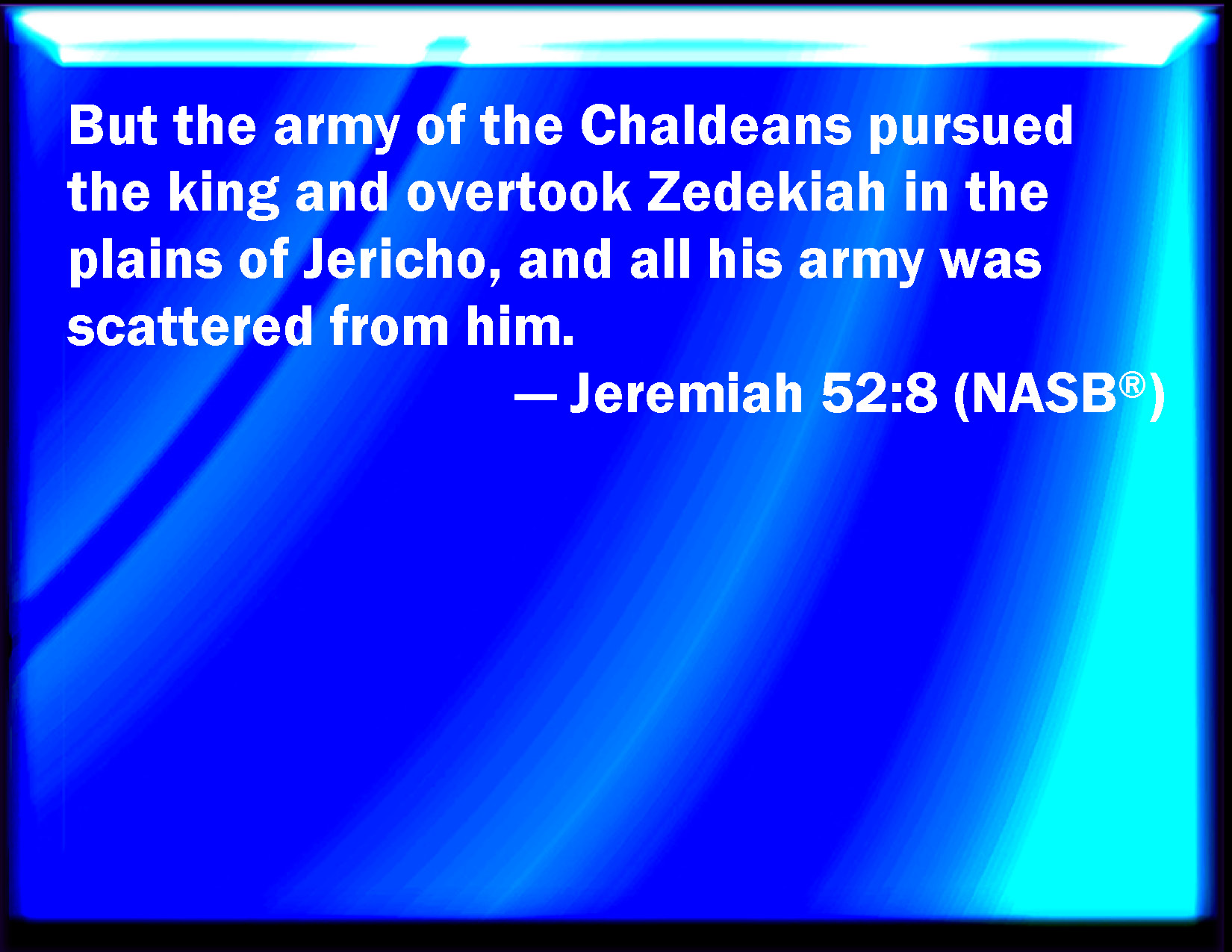 Jeremiah 52:8 But the army of the Chaldeans pursued after the king, and overtook Zedekiah in the plains of Jericho; and all his army was scattered from him.