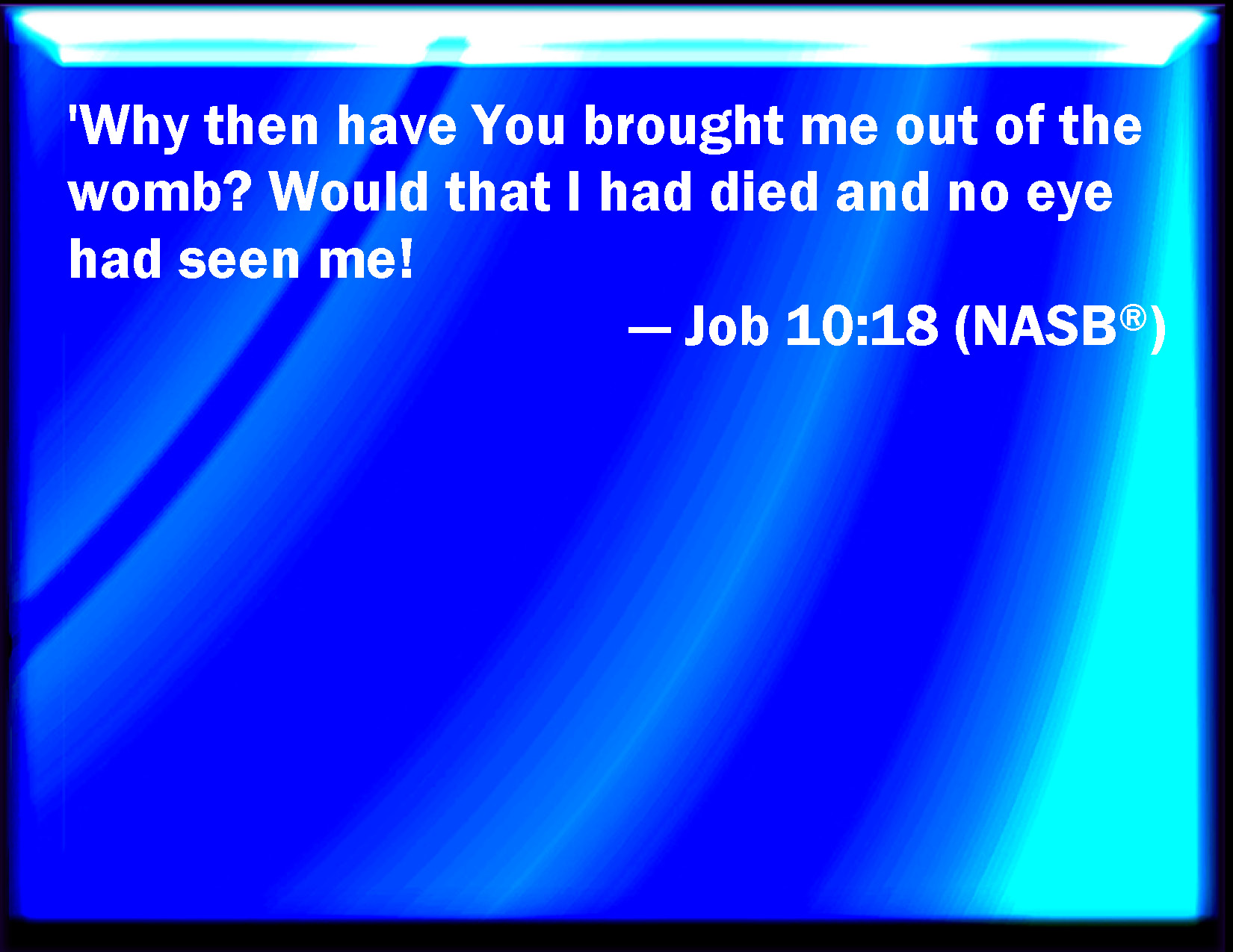 Job 10:18 Why then have you brought me forth out of the womb? Oh that I had given up the ghost, and no eye had seen me!