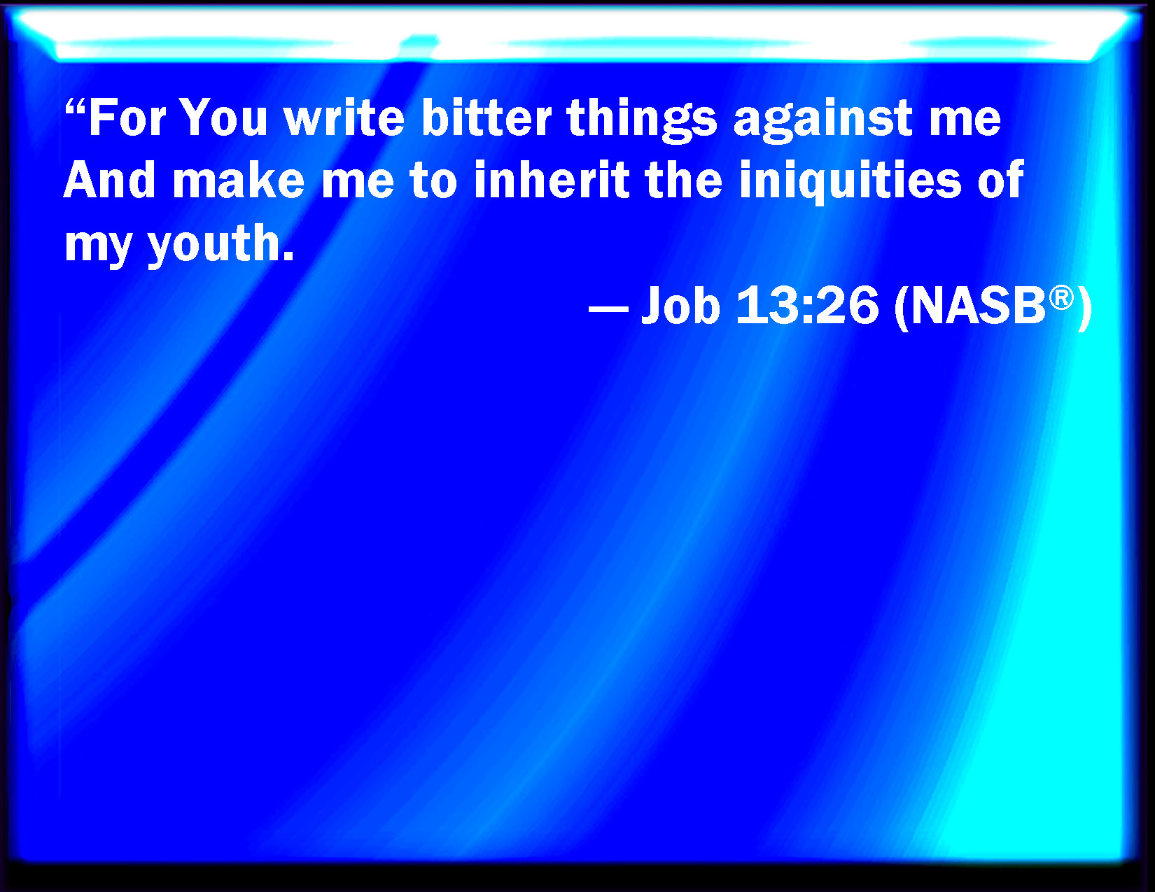 Job 13:26 For you write bitter things against me, and make me to possess the iniquities of my youth.