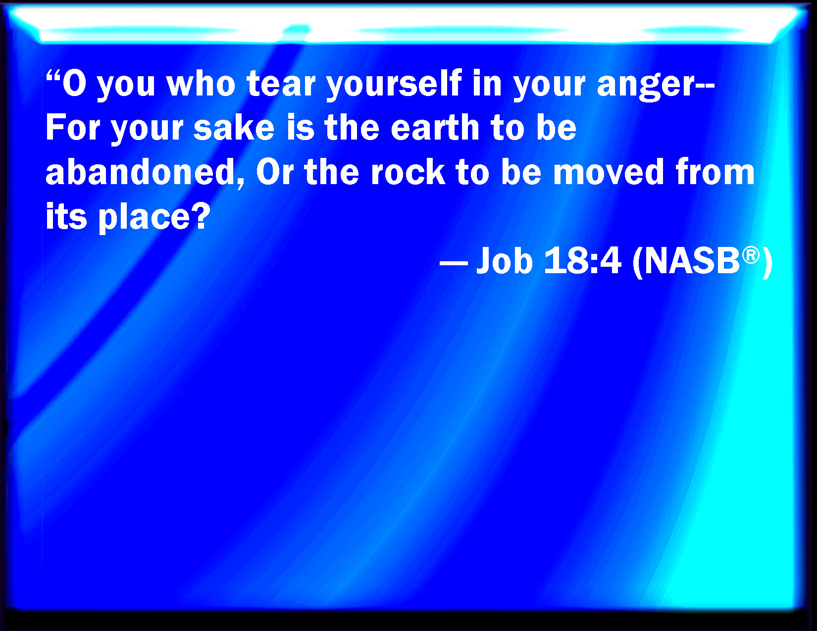Job 18:4 He tears himself in his anger: shall the earth be forsaken for you? and shall the rock be removed out of his place?