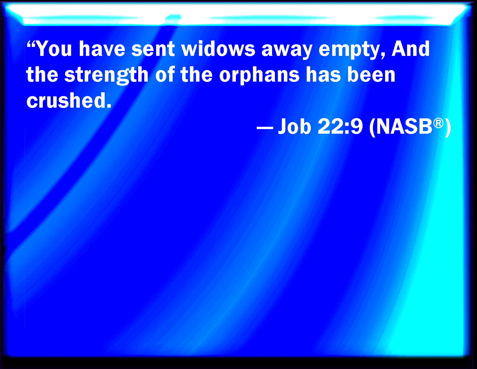 Job 22:9 You have sent widows away empty, and the arms of the fatherless have been broken.