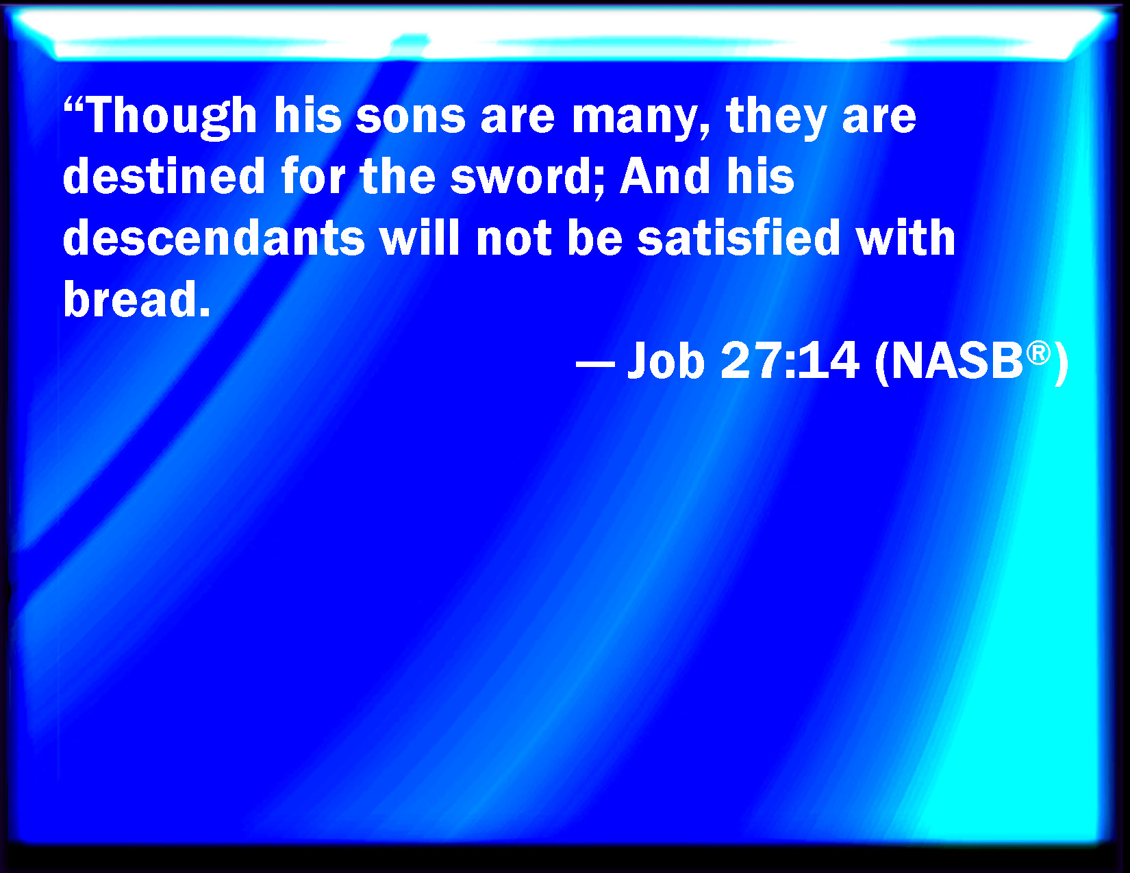 Job 27:14 If his children be multiplied, it is for the sword: and his offspring shall not be satisfied with bread.