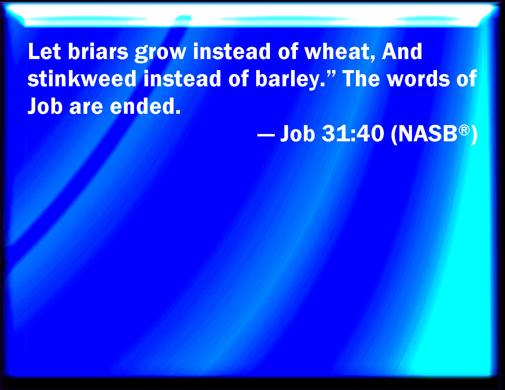 Job 31:40 Let thistles grow instead of wheat, and cockle instead of barley. The words of Job are ended.