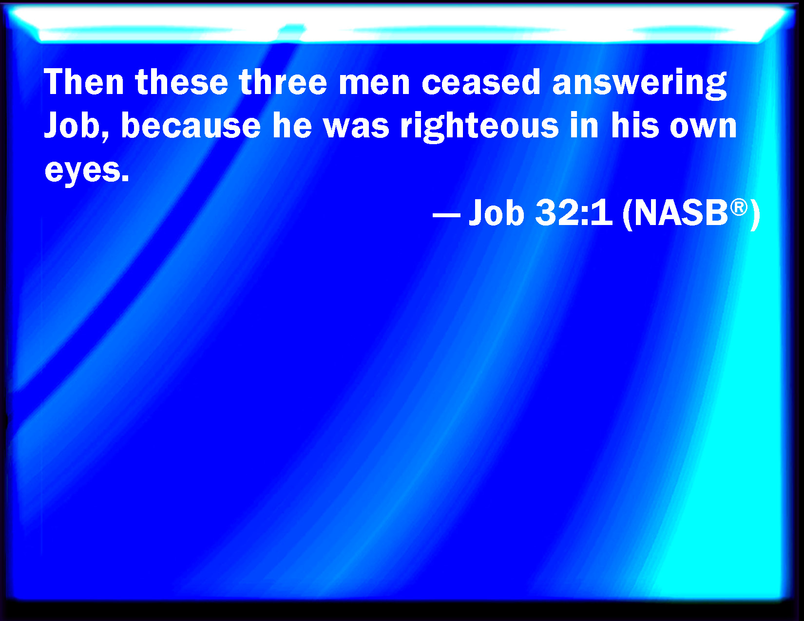 Job 32:1 So these three men ceased to answer Job, because he was righteous in his own eyes.
