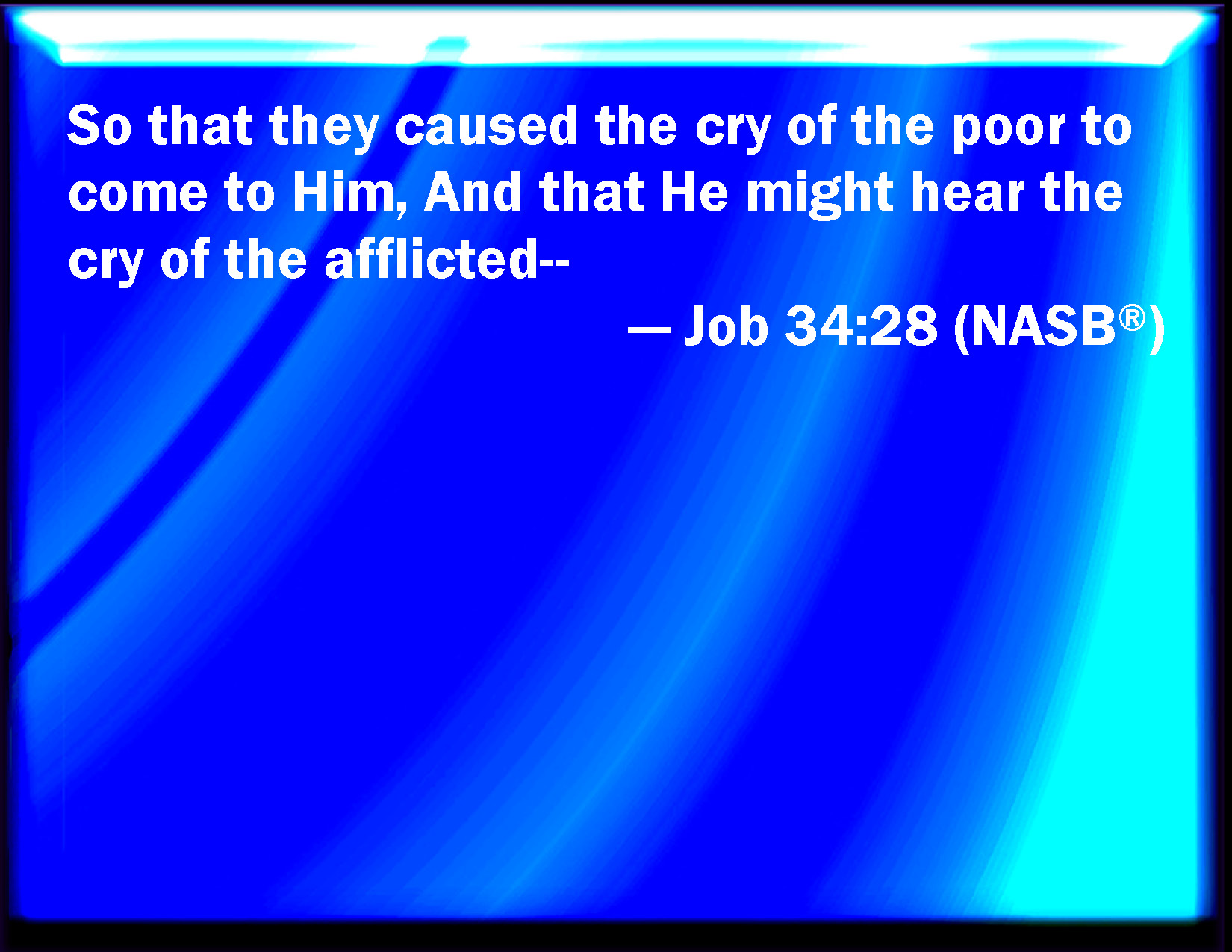 Job 34:28 So that they cause the cry of the poor to come to him, and he hears the cry of the afflicted.