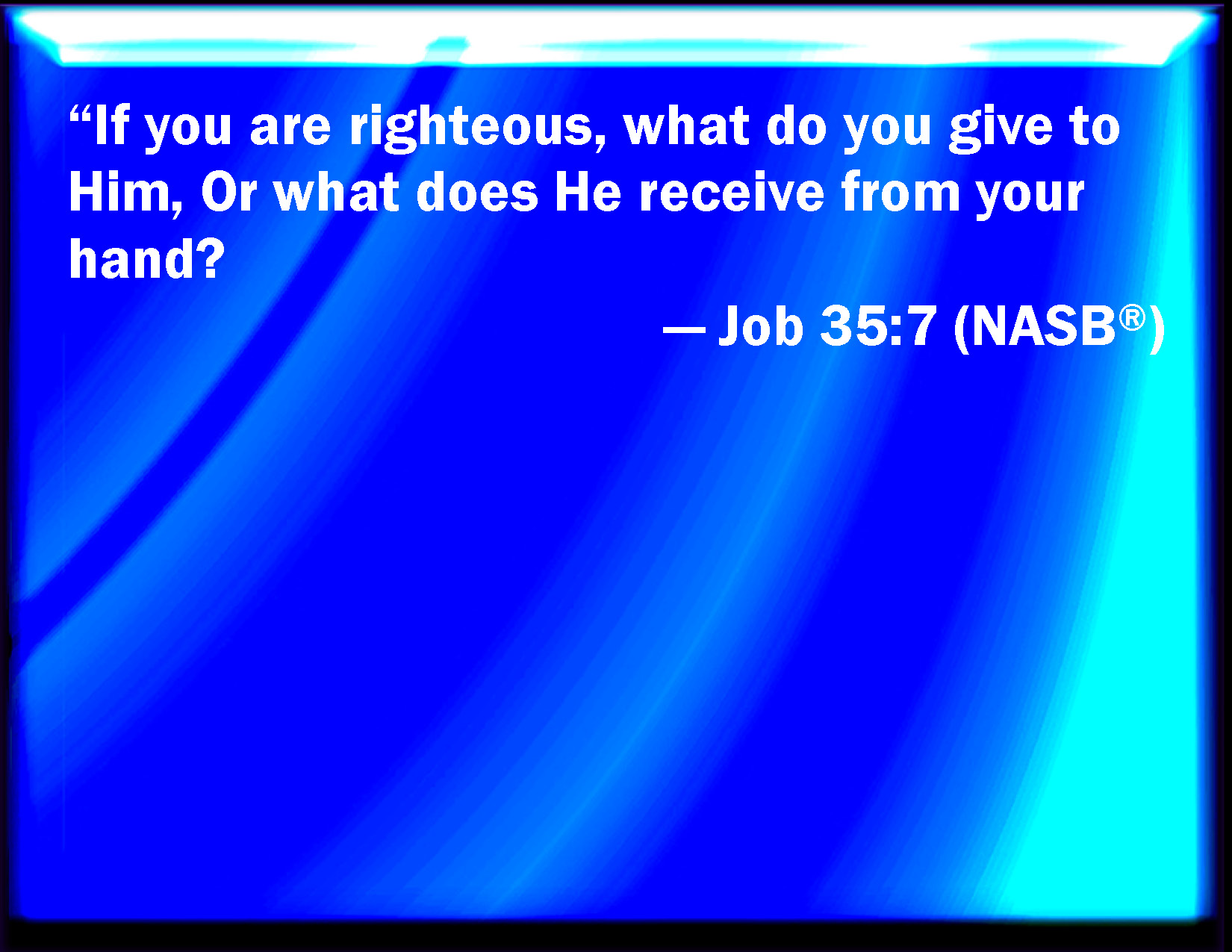 Job 35:7 If you be righteous, what give you him? or what receives he of your hand?