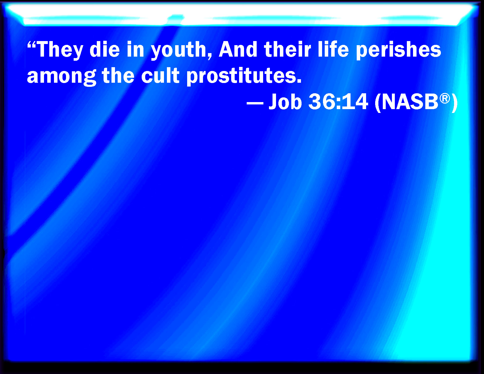 Job 36:14 They die in youth, and their life is among the unclean.