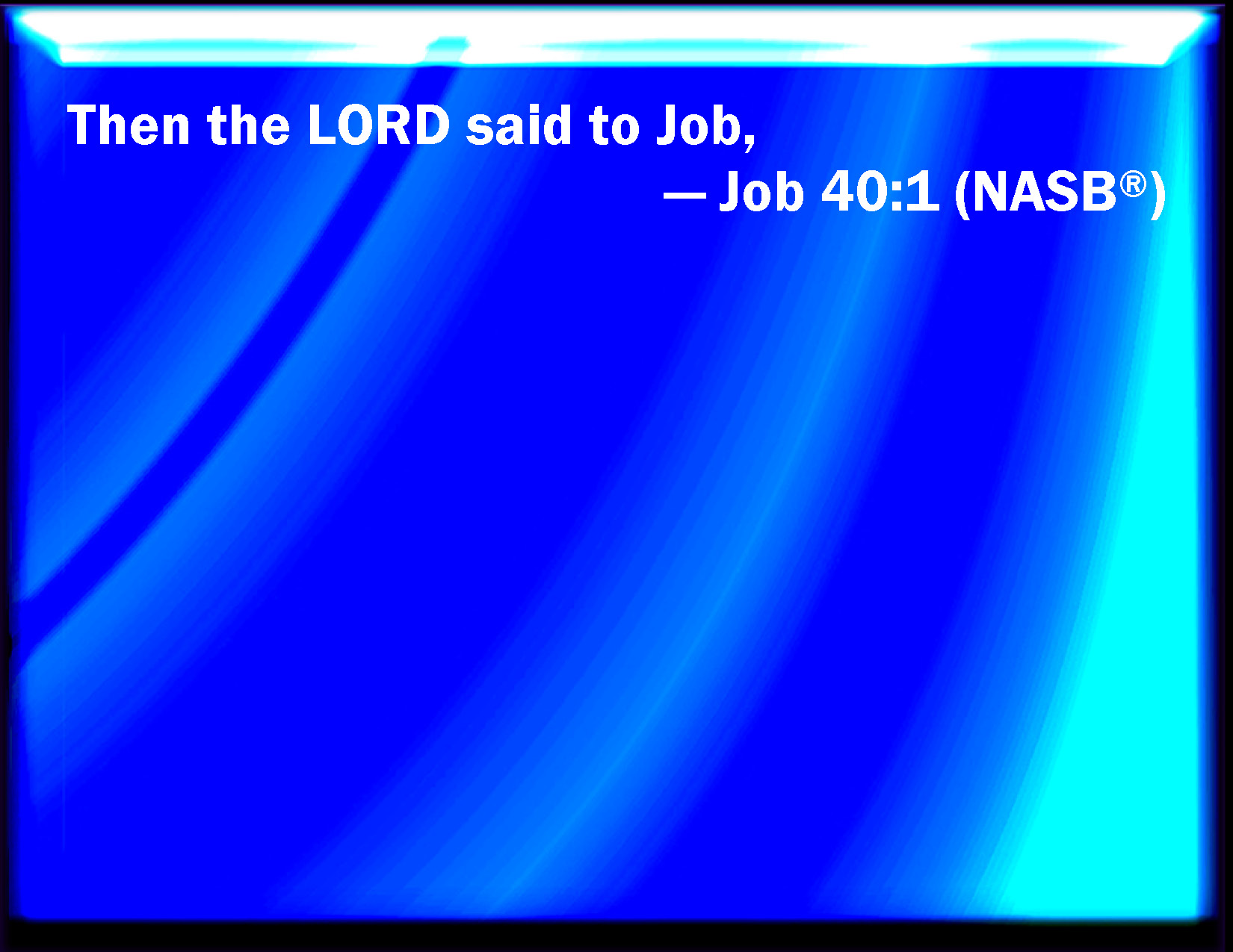 Bible Verse Slide Job 40:1 Moreover the LORD answered Job, and said, KJV: Moreover the LORD answered Job, and said, DRB: And the Lord went on, and said to Job : DBT: And Jehovah answered Job and said, ERV: Moreover the LORD answered Job, and said, WBT: Moreover, the LORD answered Job, and said, WEB: Moreover Yahweh answered Job, YLT: And Jehovah doth answer Job, and saith: — Links Job 40:1 NIV • Job 40:1 NLT • Job 40:1 ESV • Job 40:1 NASB • Job 40:1 KJV • Job 40:1 Interlinear • Job 40:1 Commentaries • Job 40:1 Parallel Texts • Job 40:1 Bible Apps • Job 40:1 Parallel • Bible Hub |