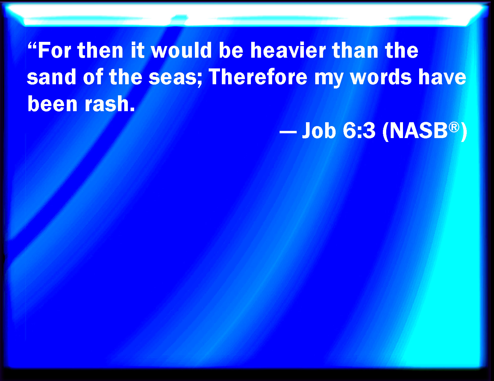 For now it would be heavier than the sand of the sea: therefore my words are swallowed up.