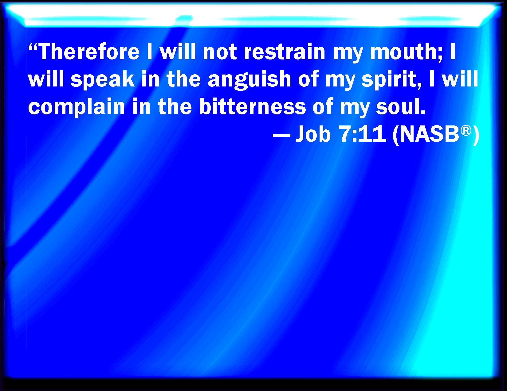 Job 7:11 Therefore I will not refrain my mouth; I will speak in the anguish of my spirit; I will complain in the bitterness of my soul.
