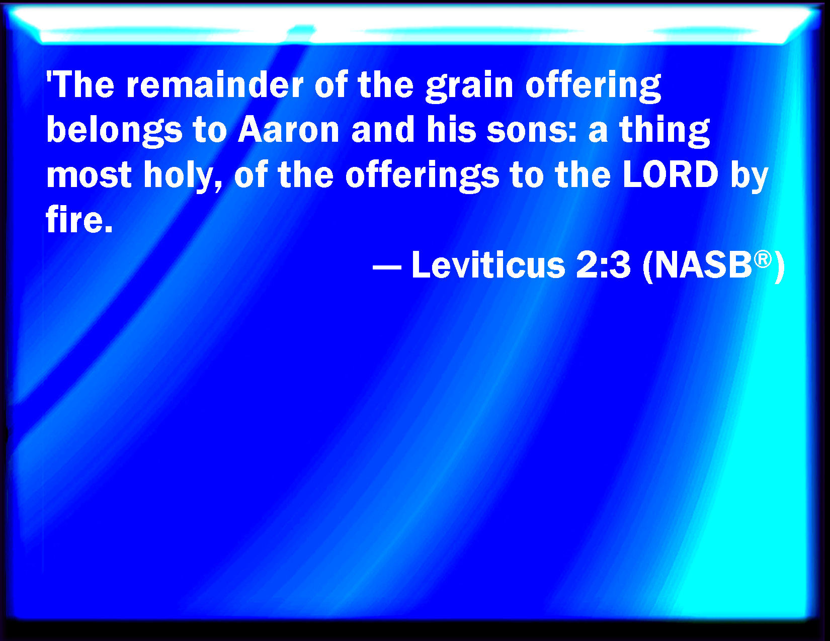 Leviticus 2:3 And the remnant of the meat offering shall be Aaron's and his sons': it is a thing most holy of the offerings of the LORD made by fire.