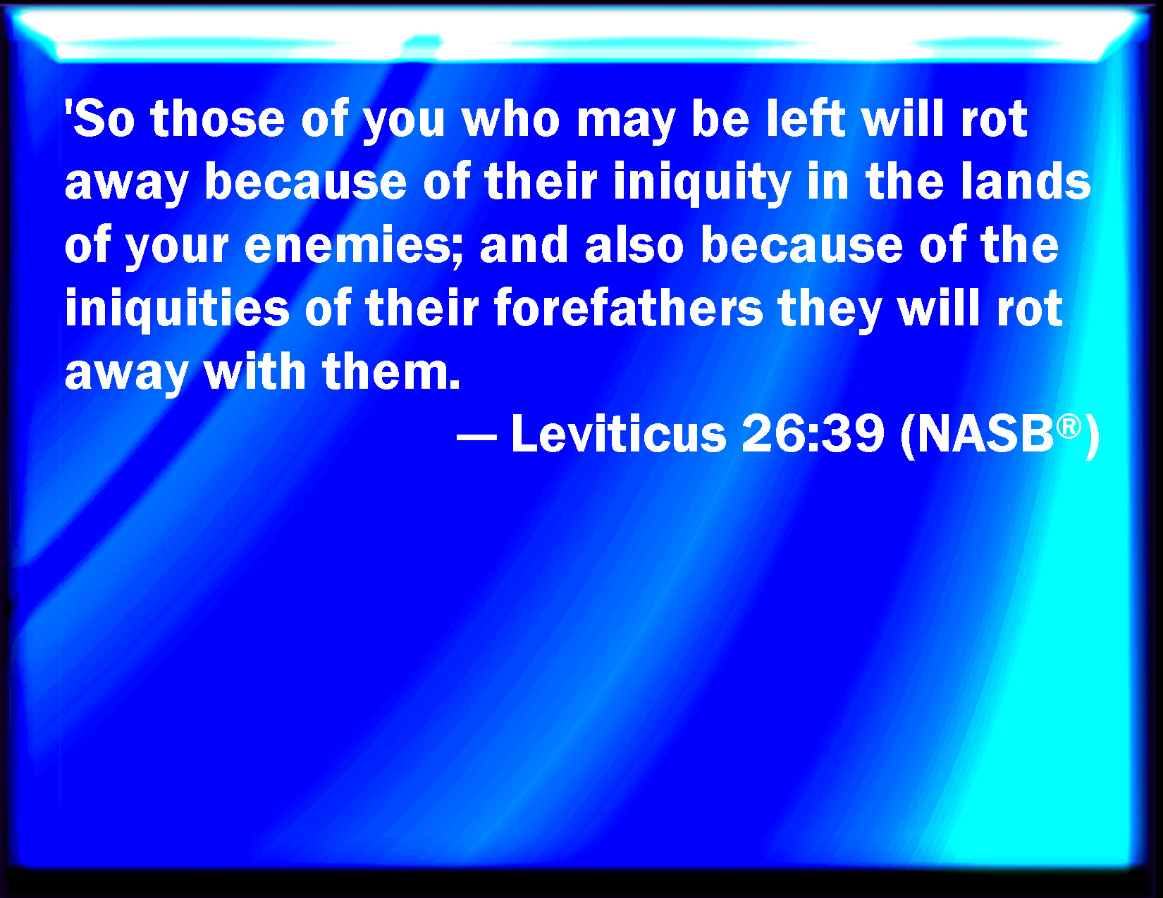 Leviticus 26:39 And they that are left of you shall pine away in their iniquity in your enemies' lands; and also in the iniquities of their fathers shall they pine away with them.