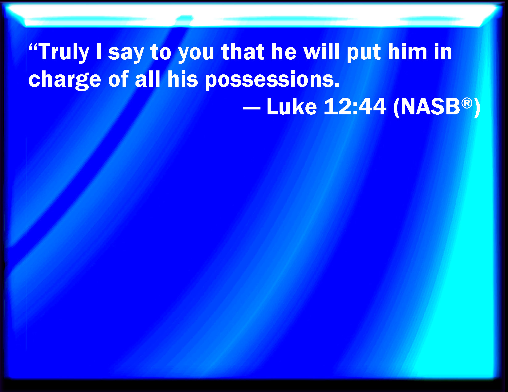 Luke 12:44 Of a truth I say to you, that he will make him ruler over all that he has.