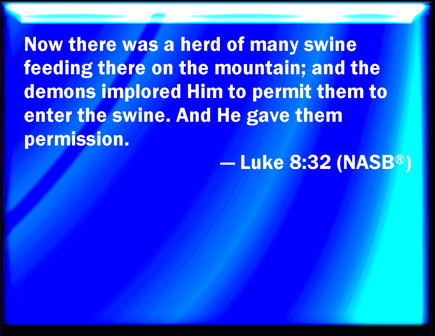 Luke 8:32 And there was there an herd of many swine feeding on the mountain: and they sought him that he would suffer them to enter into them. And he suffered them.