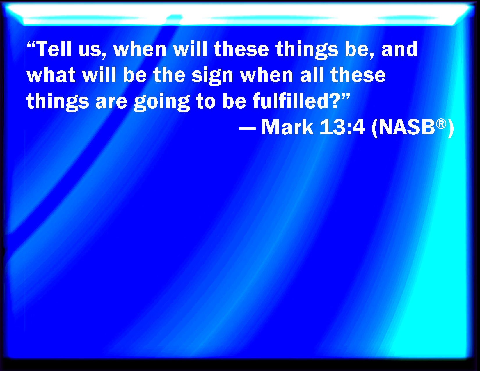 Mark 13:4 Tell us, when shall these things be? and what shall be the sign when all these things shall be fulfilled?
