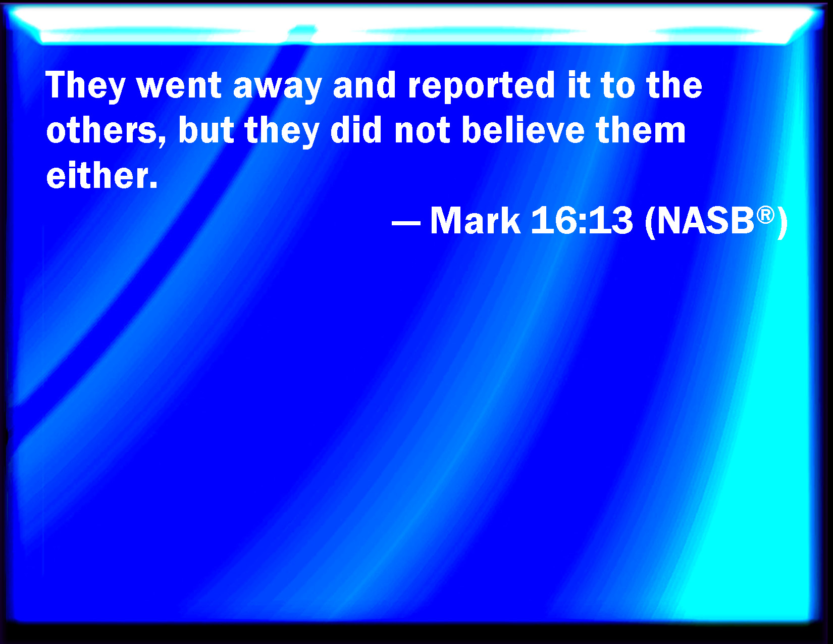 Mark 16:13 And they went and told it to the residue: neither believed they them.