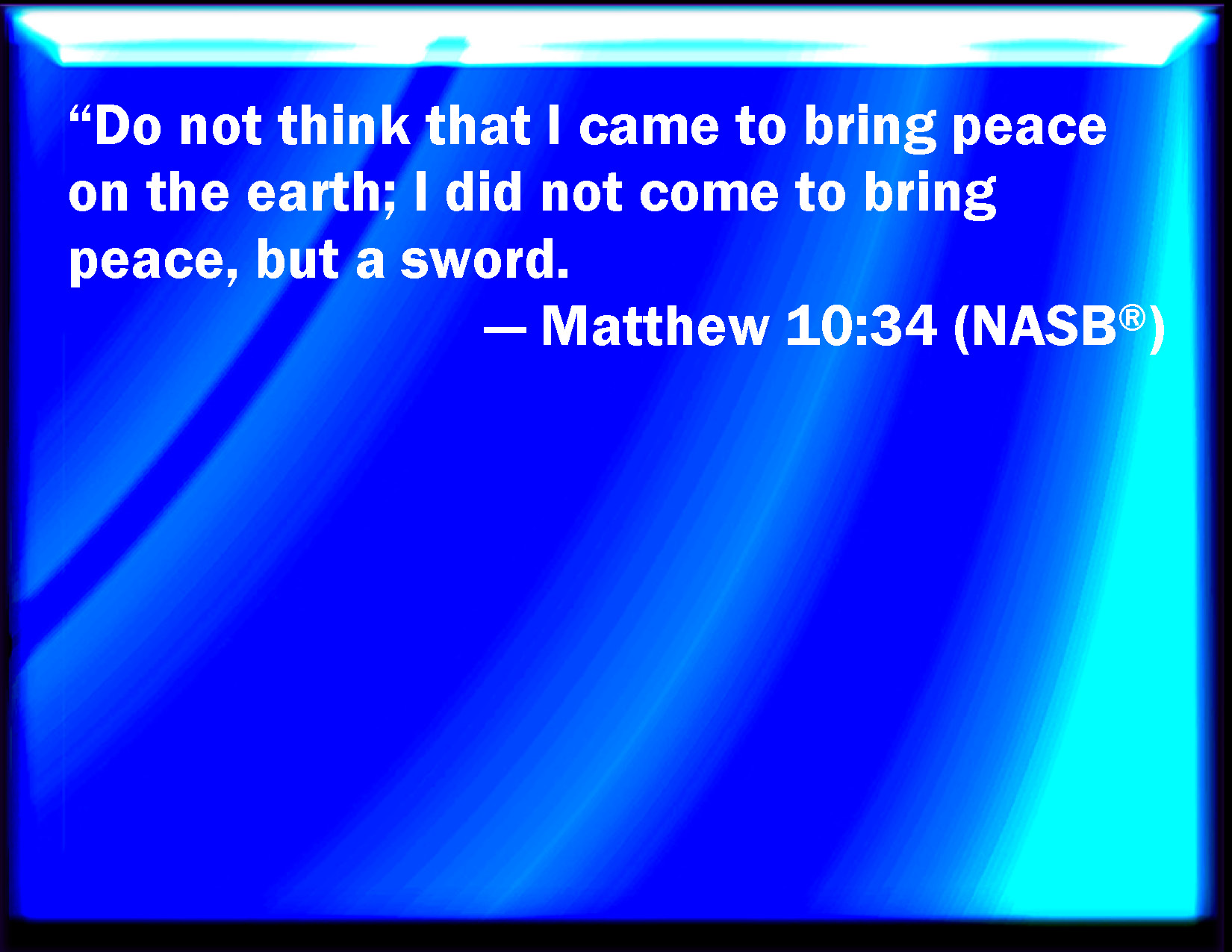 Matthew 10:34 Think not that I am come to send peace on earth: I came not to send peace, but a sword.