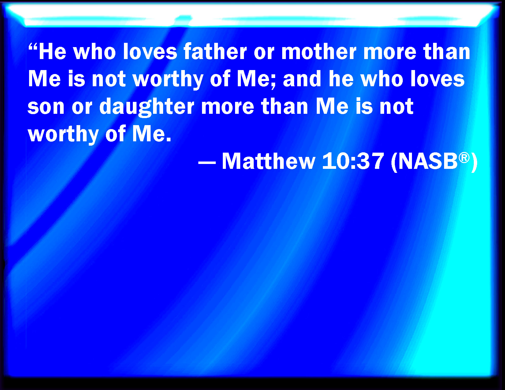 He who loves father or mother above me is not worthy of me; and he who loves son or daughter above me is not worthy of me.