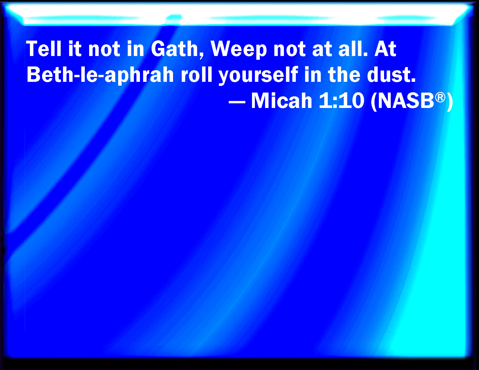 Tell it not in Gath, weep not at all; at Beth-le-aphrah roll thyself in the dust.