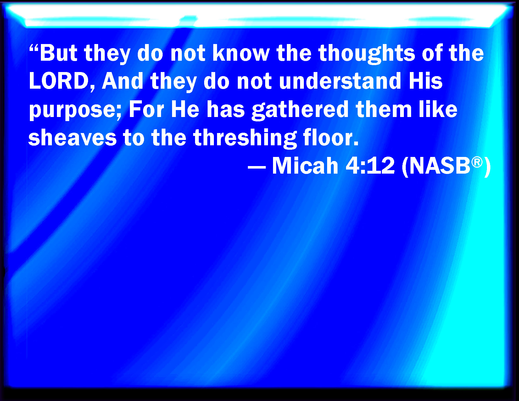 Micah 4:12 But they know not the thoughts of the LORD, neither understand they his counsel: for he shall gather them as the sheaves into the floor.