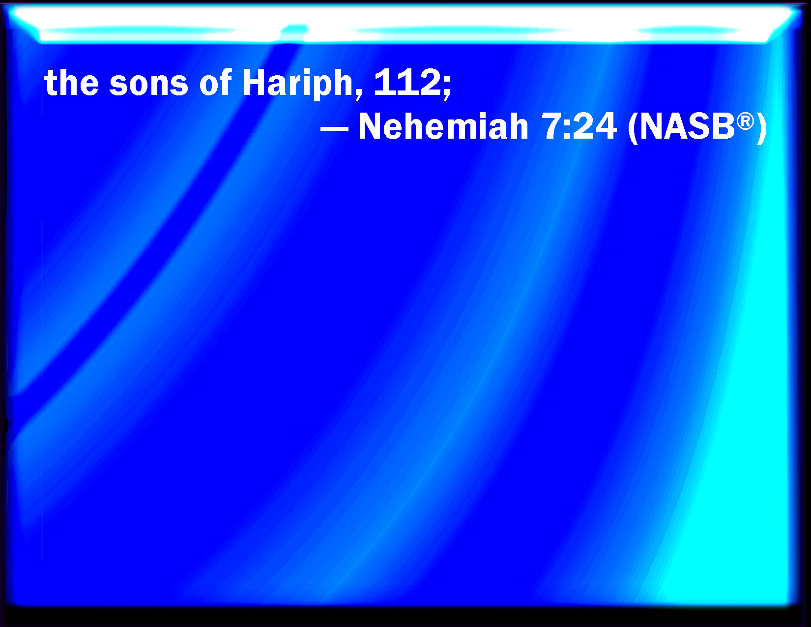 Nehemiah 7:24 The children of Hariph, an hundred and twelve.