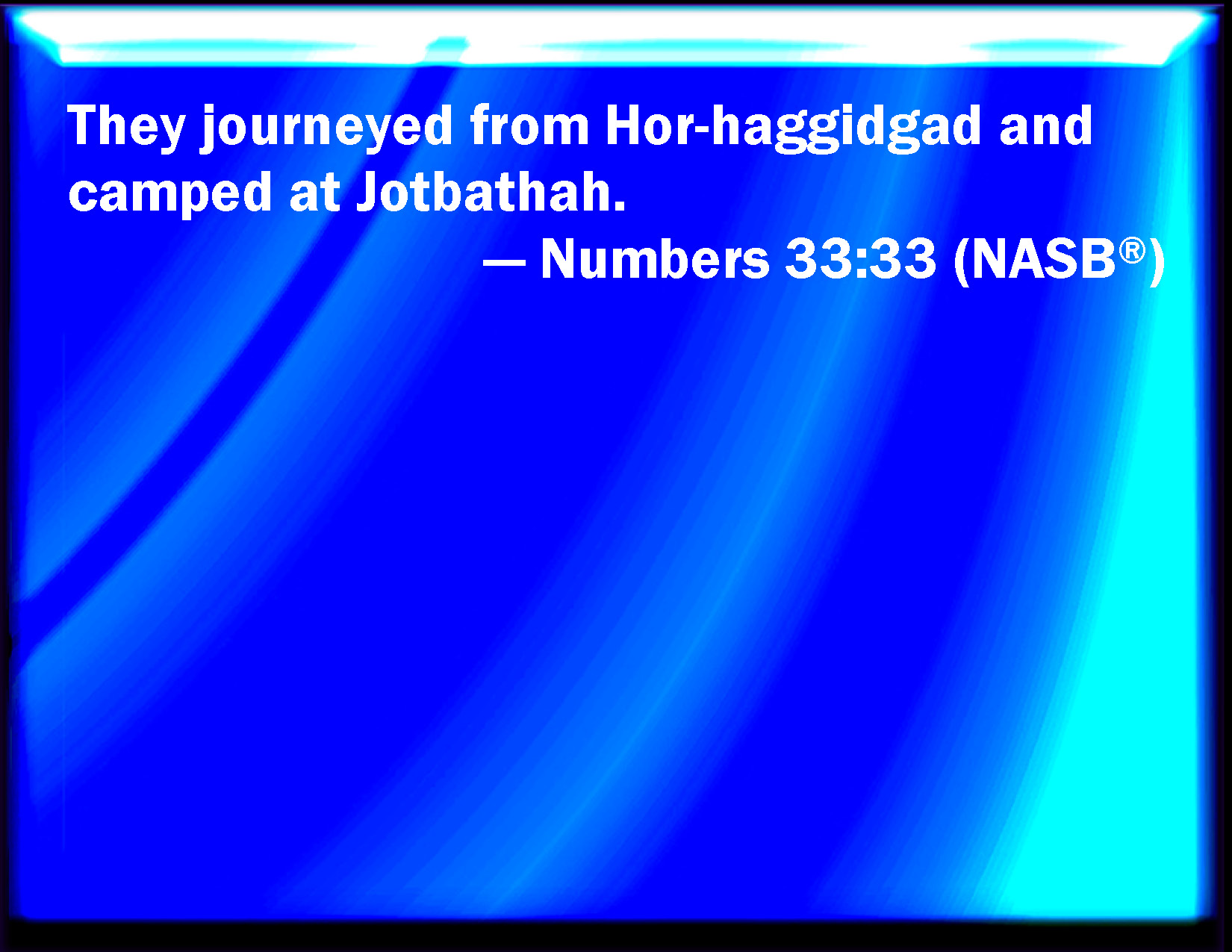 Numbers 33:33 And they went from Horhagidgad, and pitched in Jotbathah.