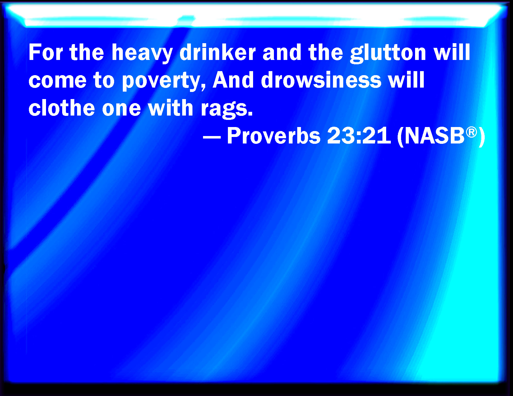 Proverbs 23:21 For the drunkard and the glutton shall come to poverty: and drowsiness shall clothe a man with rags.