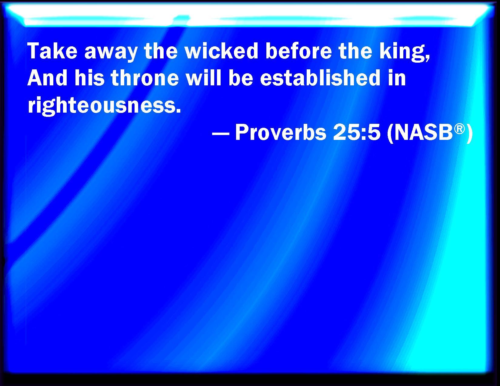 Proverbs 25:5 Take away the wicked from before the king, and his throne shall be established in righteousness.
