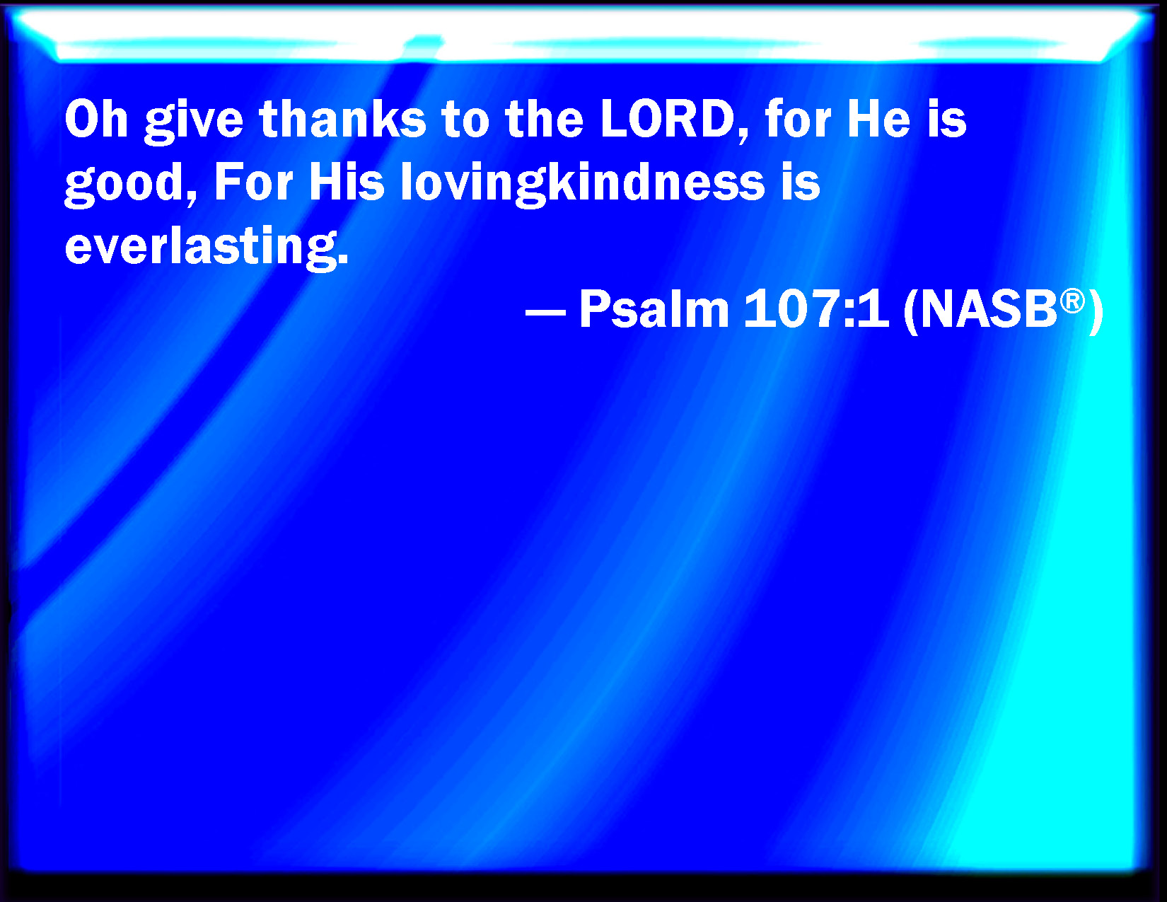 Psalm 107:1 O give thanks to the LORD, for he is good: for his mercy endures for ever.
