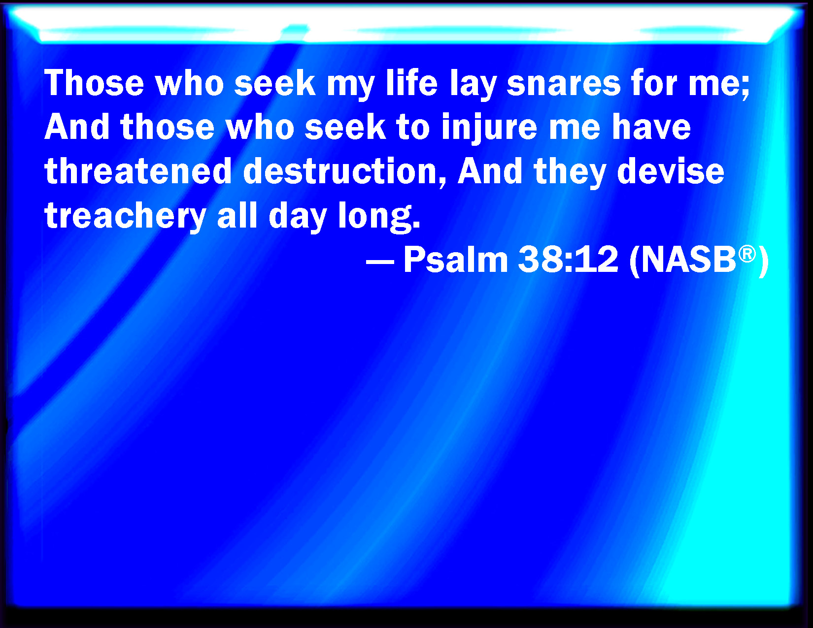 Psalm 38:12 They also that seek after my life lay snares for me: and they that seek my hurt speak mischievous things, and imagine deceits all the day long.