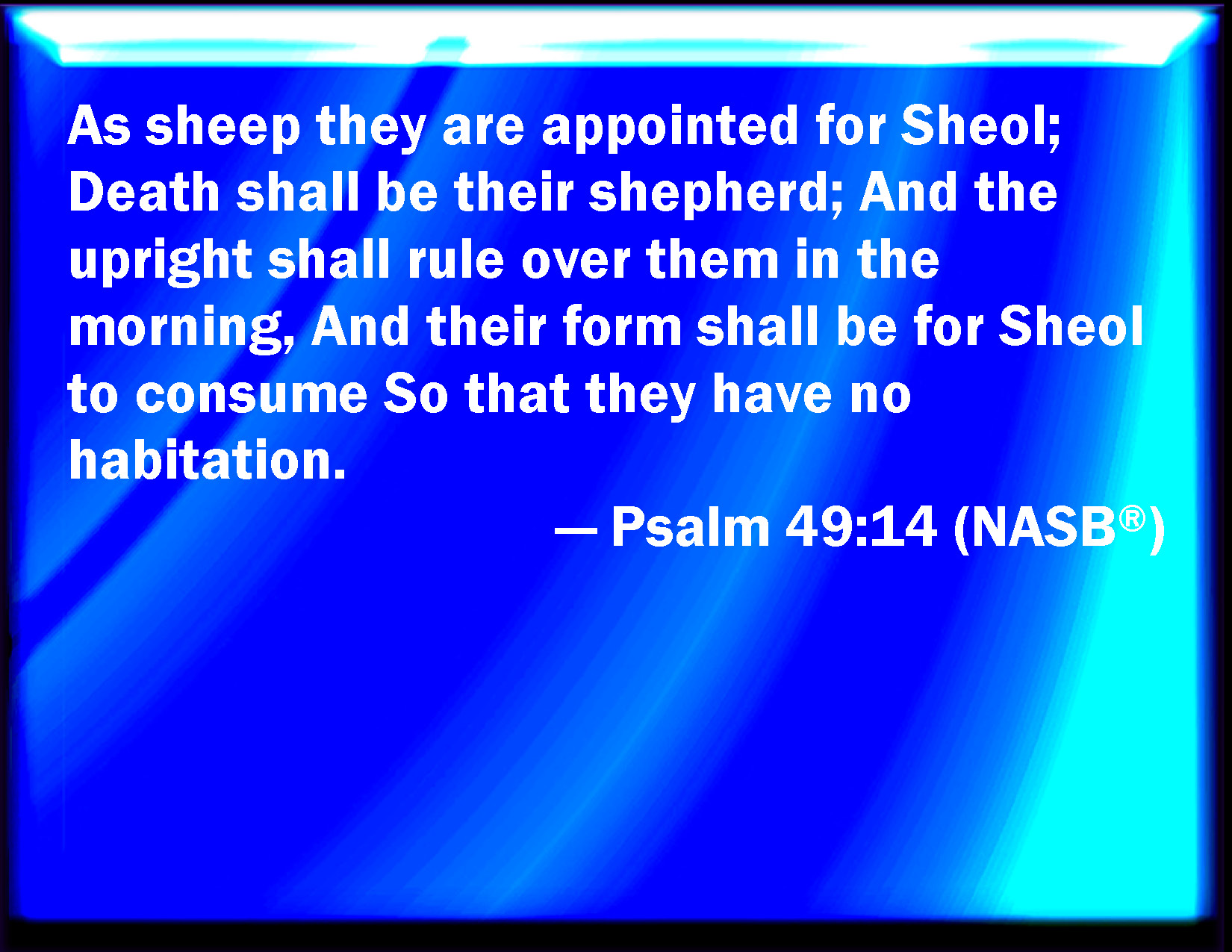 Like sheep are they laid in Sheol: Death feedeth on them; and the upright shall have dominion over them in the morning; and their comeliness shall be for Sheol to consume, that there be no habitation for them.