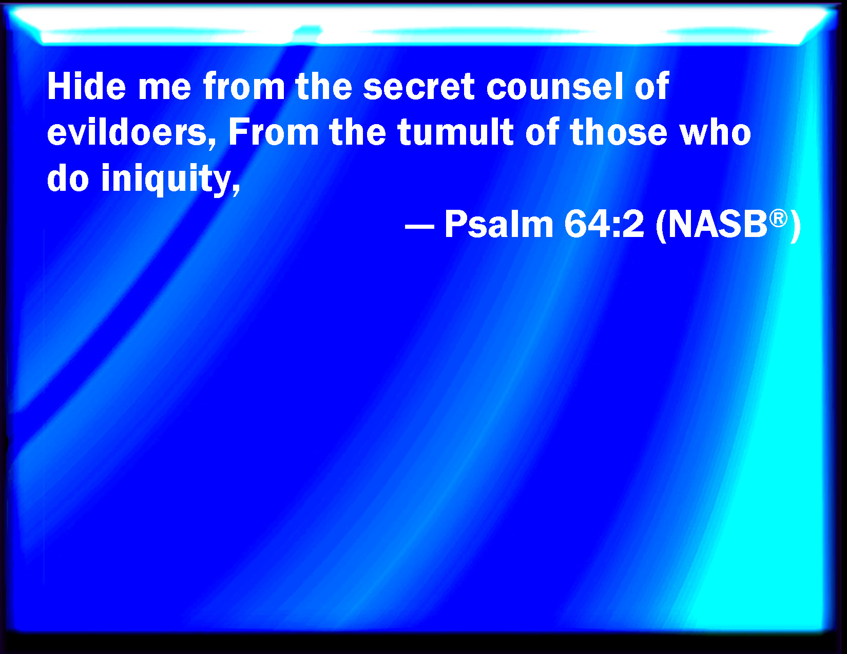 Psalm 64:2 Hide me from the secret counsel of the wicked; from the insurrection of the workers of iniquity: