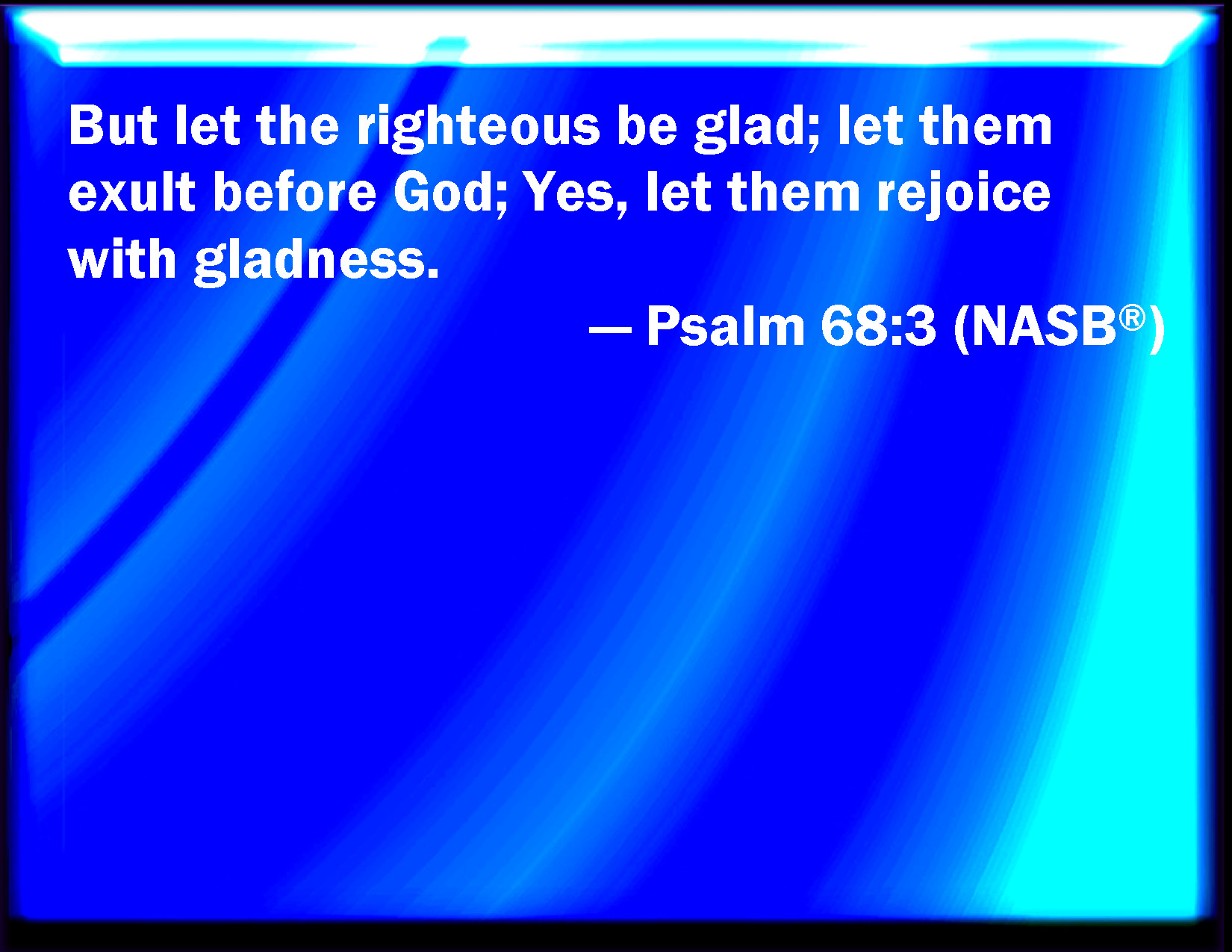 Psalm 68:3 But let the righteous be glad; let them rejoice before God: yes, let them exceedingly rejoice.